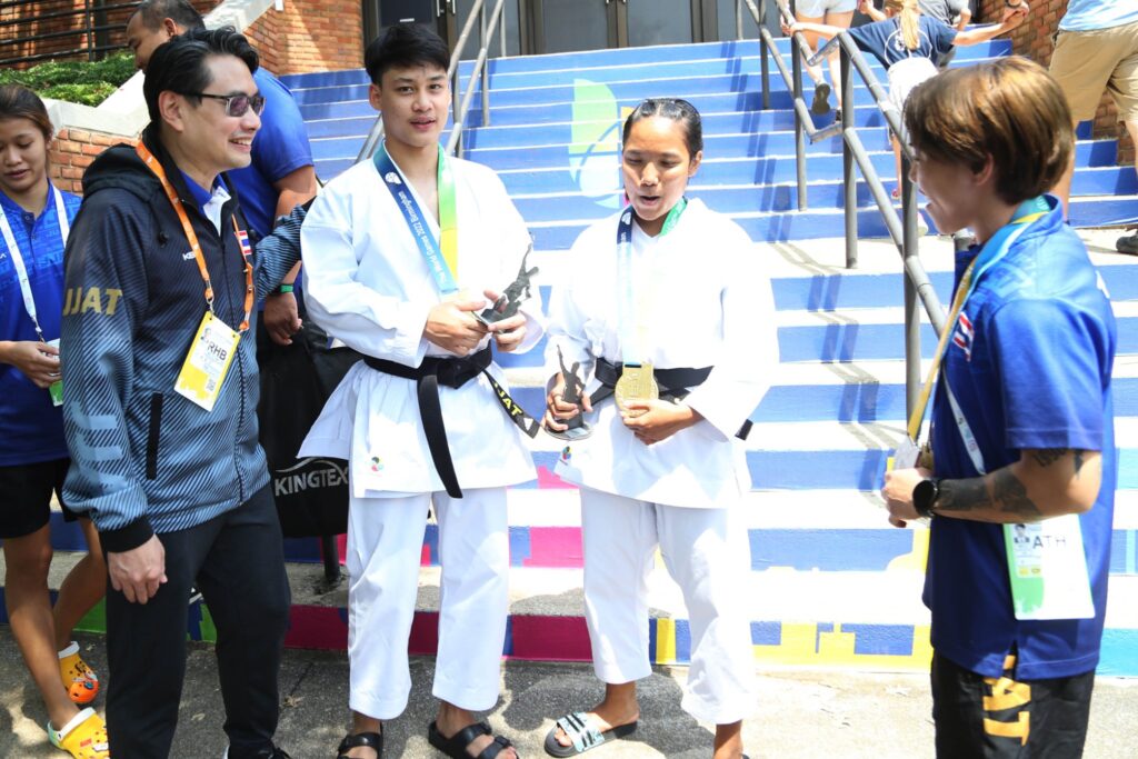 ดร.ก้องศักด ยอดมณี ผู้ว่าการ กกท. พร้อมด้วยนางโปรดปราน สมานมิตร รองผู้ว่าการ กกท. ฝ่ายยุทธศาสตร์และเทคโนโลยีสารสนเทศ ร่วมแสดงความยินดีกับนักกีฬายูยิตสู ทีมชาติไทย ที่ช่วยกันทำผลงาน ในมหกรรมกีฬา “เวิลด์เกม 2022” ครั้งนี้