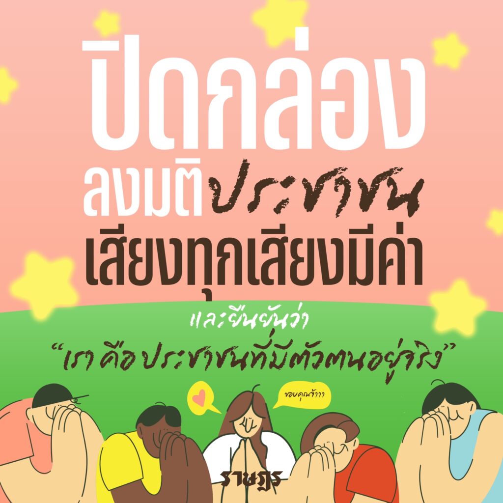 กลุ่มราษฎรปิดกล่องประชามติ”ทุกเสียงมีค่า” ขอบคุณประชาชนทุกคนที่เชื่อมั่น เชิญชวนร่วม”แคมป์ปิ้งฟังสภา”