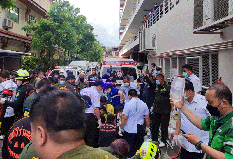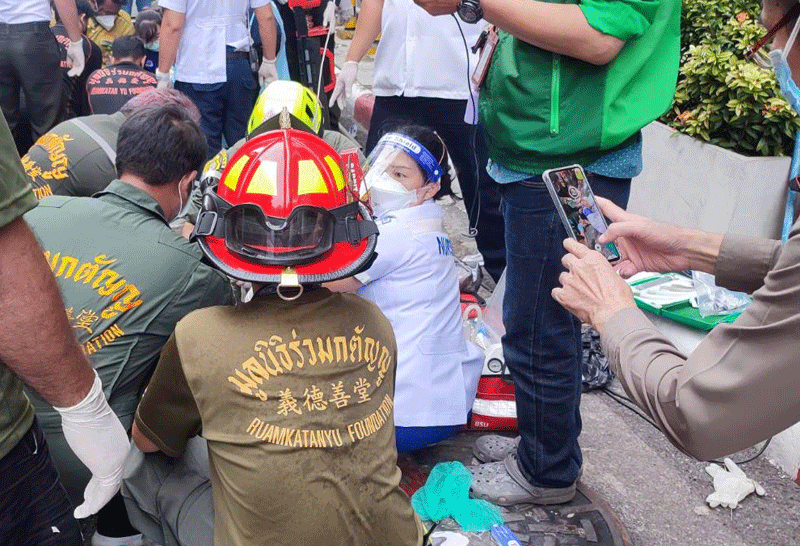 4 ช่างซ่อมคอนโด ลงซ่อมท่อประปา เกิดไฟฟ้ารั่ว หมดสติ ในท่อระบายน้ำ กู้ภัยช่วยเหลือขึ้นมาได้แล้ว เร่งทำ CPR