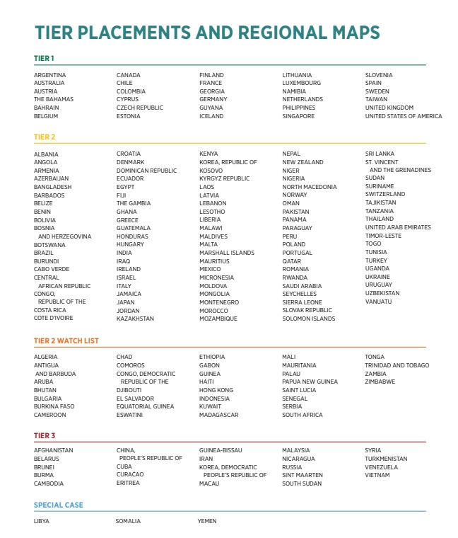 “มี 21 ประเทศที่ได้รับการปรับอันดับสูงขึ้นหนึ่งระดับ เนื่องจากรัฐบาลเพิ่มความพยายามต่อสู้กับการค้ามนุษย์ทั้งในประเทศและต่างประเทศ แต่ก็มี 18 ประเทศ ที่ถูกลดอันดับเพราะไม่แสดงให้เห็นถึงความพยายามแก้ไขจัดการ หรือแม้กระทั่งรัฐบาลเป็นฝ่ายสนับสนุนให้เกิดการค้ามนุษย์ขึ้นเสียเอง” นายบลิงเคน กล่าว