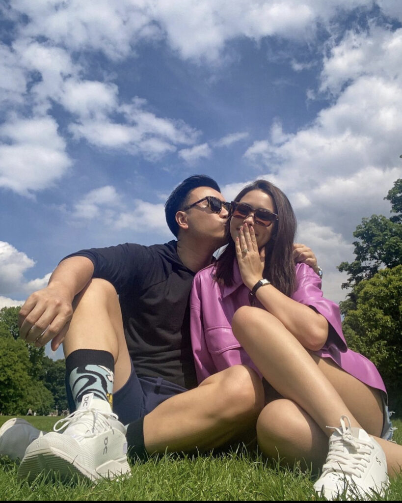 “ก็เซอร์ไพรส์จริงๆ ไม่ได้แพลนอะไร ก็แฮปปี้ค่ะ แฮปปี้มาก และไม่ได้คิดว่ามันจะเกิดขึ้นเร็วขนาดนี้ค่ะ ไม่ได้มีสัญญาณอะไรมาก่อนเลย ชุดนี้ก็เหมือนนางบินตามไปเพื่อเซอร์ไพรส์โดยเฉพาะเลยค่ะ ตอนนี้นเขาอึ้งค่ะ จำได้เหมือนกับหนูให้เขาถ่ายรูปค่ะ ไปเดินสวนกัน ก็บอกพี่โน้ตช่วยถ่ายรูปให้หน่อย เขาก็ถ่ายๆแล้วก็บอกถ่ายคู่กันไหม ตั้งกล้องถ่ายกัน ก็ถ่ายไป นางก็คงกดอัดวิดีโอค่ะ พอหันมาอีกทีคือเขาคุกเข่า ก็สตั๊นค่ะ พูดอะไรไม่ออก พี่โน้ตก็เงียบนานอยู่นะ จนกระทั่งหนูบอก มีอะไรจะพูดเหรอ นางก็เลยบอก แต่งงานกันนะ แบบเบาๆ เสียงเล็กๆ ความรู้สึกตอนนั้นหมือนมันยังอึ้งอยู่ค่ะ รู้ตัวอีกทีคือน้ำตาไหลพรากเลย มันเป็นความตัวชา ช็อก อะไรแบบนี้ค่ะ คือเรียกว่าเซอร์ไพรส์จริงๆ เลยค่ะ แบบ100 เปอร์เซ็นต์ แต่งตัวใส่กางเกงขาสั้น เสื้อยืดไปเดินสวน ตลกมาก ธรรมชาติสุดๆ”