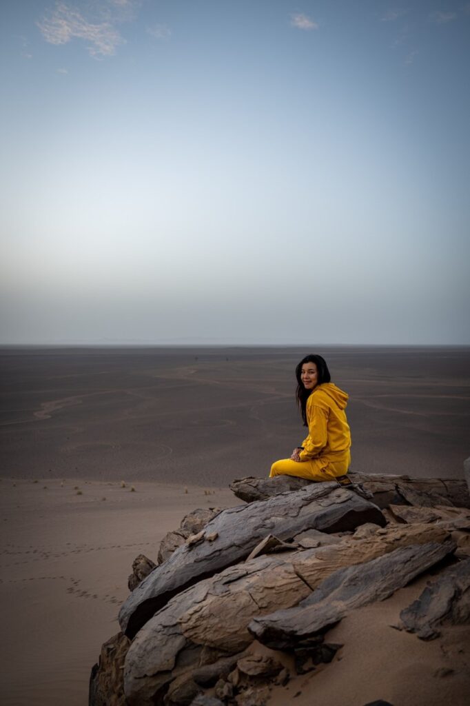 “วันนั้น เป็นวันที่สองที่เราเข้าไปในทะเลทรายซาฮาร่าแล้ว ช่วงนั้นเรากำลังจะพักตั้งเต้นท์กัน หวานก็มีผ้าสีเหลืองผืนนี้ซื้อมาจากตลาดพื้นเมืองก่อนเข้าทะเลทราย เอามาพันหัวลดความร้อนมาตั้งแต่เริ่มเข้าทะเลทรายแล้ว จู่ๆเพื่อนชาวเยอรมัน ซึ่งเขาเป็นตัวแทนที่ได้รับการคัดเลือกมาทำภาระกิจครั้งนี้ด้วย เขาขอมาให้หวานเป็นนางแบบให้ เราก็มีเพื่อนเชียร์อยู่ข้างๆก็สนุกสนานเฮฮาลดความเครียดจากสภาพแวดล้อมที่เราเจอ ต้องบอกว่าอากาศและทรายร้อนและแห้งมากๆ แต่เมื่อวิญญาณนางแบบเข้าสิง ต้องเต็มที่หน่อยค่ะ ก็โพสต์ด้วยความสนุก คลุกทรายบ้างอะไรบ้าง ซึ่งทั้งหวานเอง ตากล้อง และเพื่อนๆก็ชอบภาพเซ็ทนี้กันมากๆๆ เขาบอกว่า คนไทยผิวดีมาก สวย และเซ็กซี่ หวานก็ปลื้มเลยซิคะ” หวานหวานกล่าว