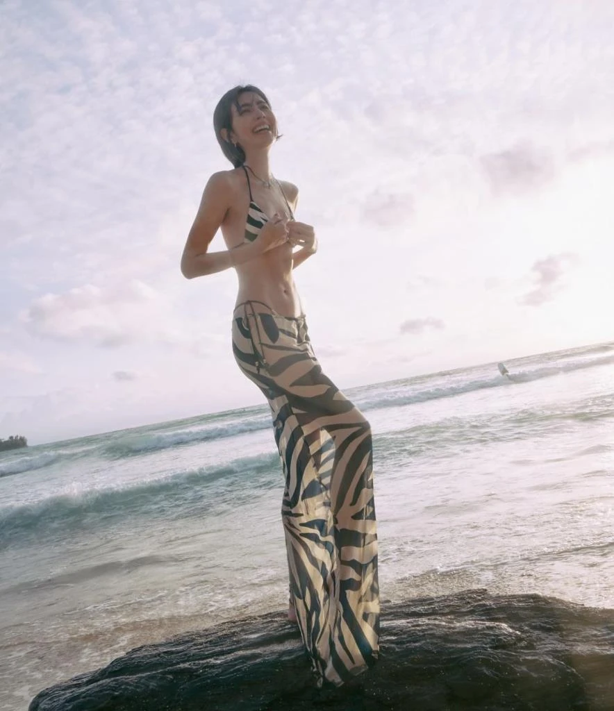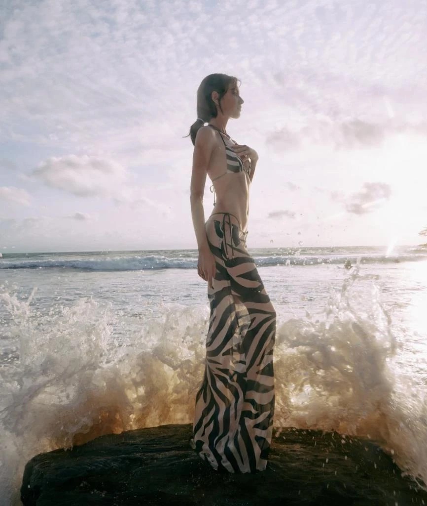 ล่าสุด แพ็กกระเป๋าไปเช็กอินทะเลอีกครั้ง งานนี้เจ้าตัวไม่พลาด เสิร์ฟบิกินีตัวจิ๋วลายม้าลาย โชว์สัดส่วนหุ่นสับ อวดให้เห็นเรือนร่างผอมเพรียว ทั้งเอวเอสหน้าท้องแบนราบสุดเร้าใจ แม้มีกางเกงซีทรูก็ปิดความเซ็กซี่เกินต้านไม่ไหว