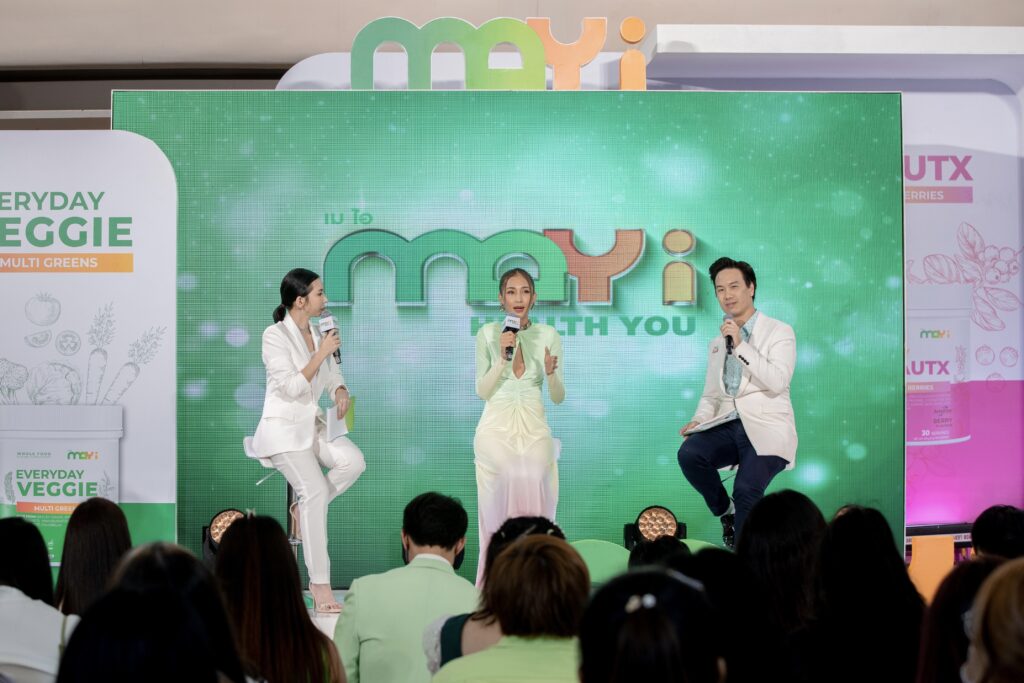 ด้านผู้บริหารคนเก่ง “เนย-โชติกา” เปิดเผยถึงธุรกิจใหม่ MAY i (เม ไอ)กล่าวว่า “สำหรับธุรกิจใหม่ MAYiเริ่มต้นมาจากส่วนตัวเนยเป็นคนรักธรรมชาติ ที่บ้านมีทั้งสวนผักและสวนผลไม้ ให้ลูกๆได้รับประทานผักปลอดสารเคมี และตัวเนยเองเป็นคนชอบทานผักผลไม้อยู่แล้ว แต่ว่าหลังๆ ไลฟ์สไตล์เรามันเปลี่ยนไป เรามีลูก ไปส่งลูกโรงเรียน ทำงานเยอะ ไม่มีเวลาได้ทานผักเหมือนเดิม ก็เลยลองมาคิดดูว่าในแต่ละวัน เราทานผักไม่ถึง 400 กรัมต่อวันอย่างน้อย เกิดจากความมีปัญหาตรงนี้ เราก็เลยอยากจะดูแลสุขภาพมากขึ้นด้วย และด้วยความที่เราก็โตขึ้น ก็ต้องดูแลตัวเองทุกสัดส่วน ก็เลยพัฒนาและเกิดเป็นตัวนี้ที่ใช้เวลาในการคิดค้น และพัฒนาสูตรที่ดีที่สุด อร่อยที่สุด เป็นเวลา 2 ปี จนได้มาเป็นผลิตภัณฑ์เสริมอาหาร MAYiทั้ง 3 สูตร ผงผักเพื่อสุขภาพมีทั้งสูตรผัก 5 สี เพิ่มภูมิคุ้มกัน ,สูตรผักและผลไม้ที่ช่วยดีท็อกซ์ และสูตรเบอร์รี่รวม12 ชนิด กับวิตามินสกินคอมเพล็กช่วยบำรุงผิวอยากให้ทุกคนได้ประโยชน์และสารอาหารจากผักครบถ้วนและเพียงพอในแต่ละวัน และทำให้การใช้ชีวิต สะดวก รวดเร็ว และง่ายขึ้นก็เลยทำมาแบบจัดเต็มคือกินครบสูตร ดีทุกส่วน ตั้งแต่ตอนเช้า ระหว่างวัน จนถึงก่อนนอนรับประทานได้ง่าย ทั้งแบบชงละลายน้ำง่ายๆหรือปั่นกับน้ำผลไม้ โยเกิร์ต และ สมูทตี้ได้เลย เป็นตัวช่วยสำหรับคนที่ไม่มีเวลาทานผัก คนทานผักยาก ทานผักไม่เพียงพอต่อวัน หรือผู้สูงอายุที่เริ่มมีปัญหากับการเคี้ยวผัก เรียกได้ว่าเป็นไอเท็มเด็ดและจำเป็นมากสำหรับคนที่ใส่ใจสุขภาพทุกเพศทุกวัย”