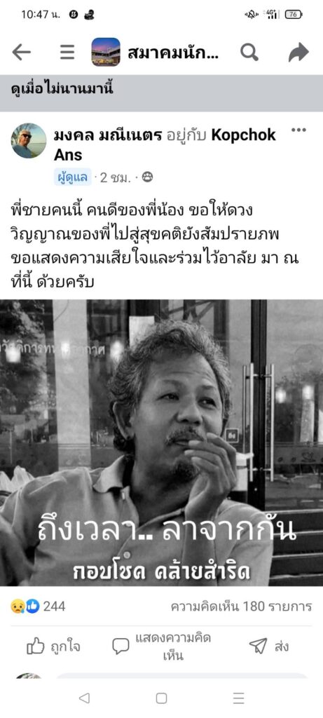 ซึ่งหลังจากมีการแชร์ข่าวออกไปก็มีบรรดาเหล่าคนบันเทิง และ แฟนคลับเข้ามาร่วมแสดงความอาลัยเป็นจำนวนมาก