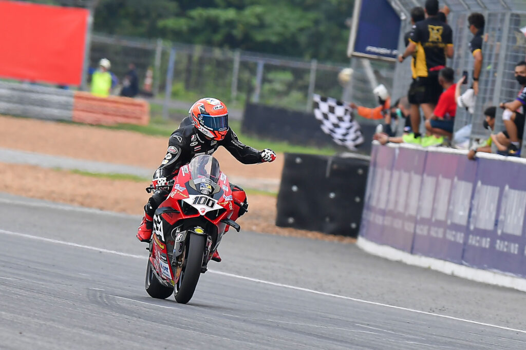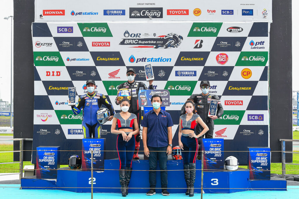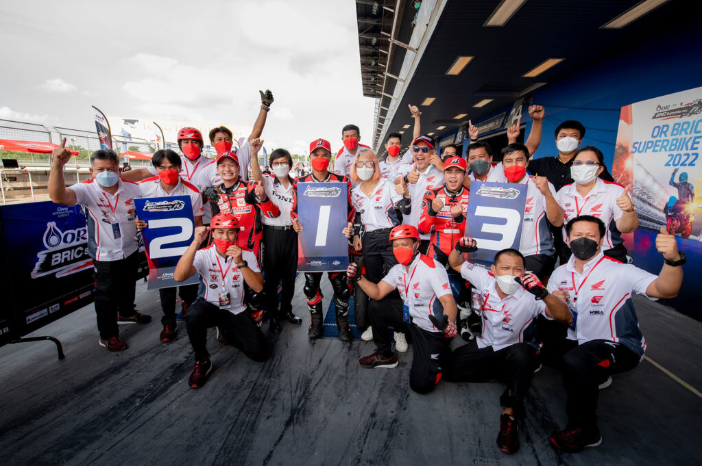ขณะ “ฮอนด้า เรซซิ่ง ไทยแลนด์” เหมาโพเดียมในรุ่น ซูเปอร์สปอร์ต 600 ซีซี โดยชัยชนะเป็นของ “ชิพ” นครินทร์ อธิรัฐภูวภัทร์ อดีตนักบิดโมโตทรีซึ่งต้องวัดกันถึงรอบสุดท้าย หลังจบเรซสุดมันส์เมื่อวันอาทิตย์ที่ผ่านมา