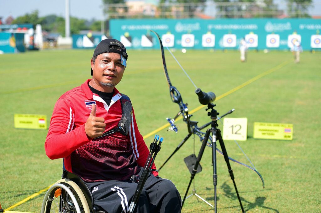 ยิงธนู การแข่งขันกีฬาอาเซียนพาราเกมส์ ครั้งที่ 11″โซโล 2022″ ที่ลาแปงแกน โกต้า บารัต เมืองโซโล ประเทศอินโดนีเซีย เมื่อวันที่ 1 ส.ค.65 รอบเช้า โรบินฮู้ดไทยควงธนูคู่ใจทำผลงานสุดสะเด่าผ่านเข้ารอบชิงชนะเลิศไปล่าเหรียญทองได้ถึง 4 ประเภท