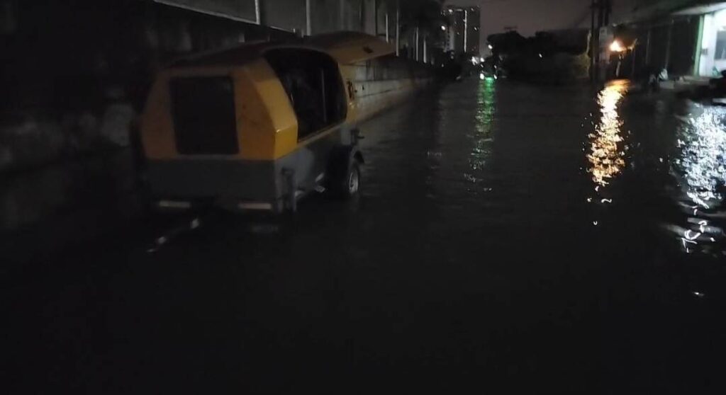 ให้ข้อมูลว่า มีน้ำท่วมขังบริเวณถนนตั้งแต่เมื่อคืนแต่น้ำเริ่มลดระดับลงอย่างต่อเนื่อง ซอยปรีดีย์พนมยงค์ 41 ยังมีน้ำท่วมขัง อยู่บ้าง พร้อมกับพูดคุยกับประชาชน ที่มารอรถเมล์เตรียมเดินทางไปทำงาน
