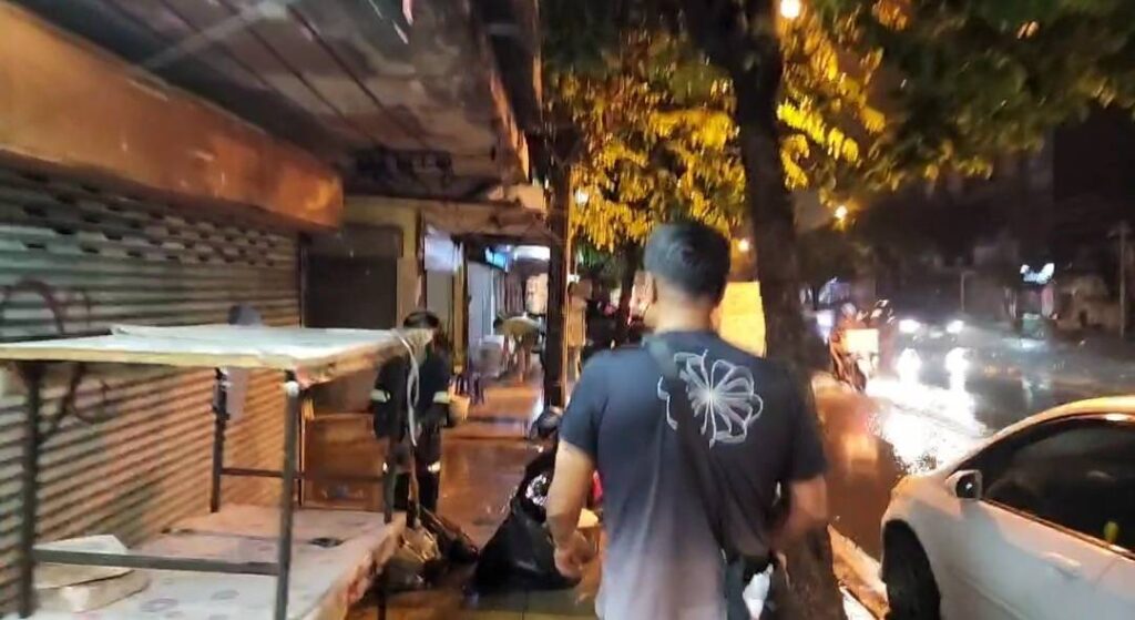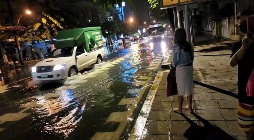 ให้ข้อมูลว่า มีน้ำท่วมขังบริเวณถนนตั้งแต่เมื่อคืนแต่น้ำเริ่มลดระดับลงอย่างต่อเนื่อง ซอยปรีดีย์พนมยงค์ 41 ยังมีน้ำท่วมขัง อยู่บ้าง พร้อมกับพูดคุยกับประชาชน ที่มารอรถเมล์เตรียมเดินทางไปทำงาน
