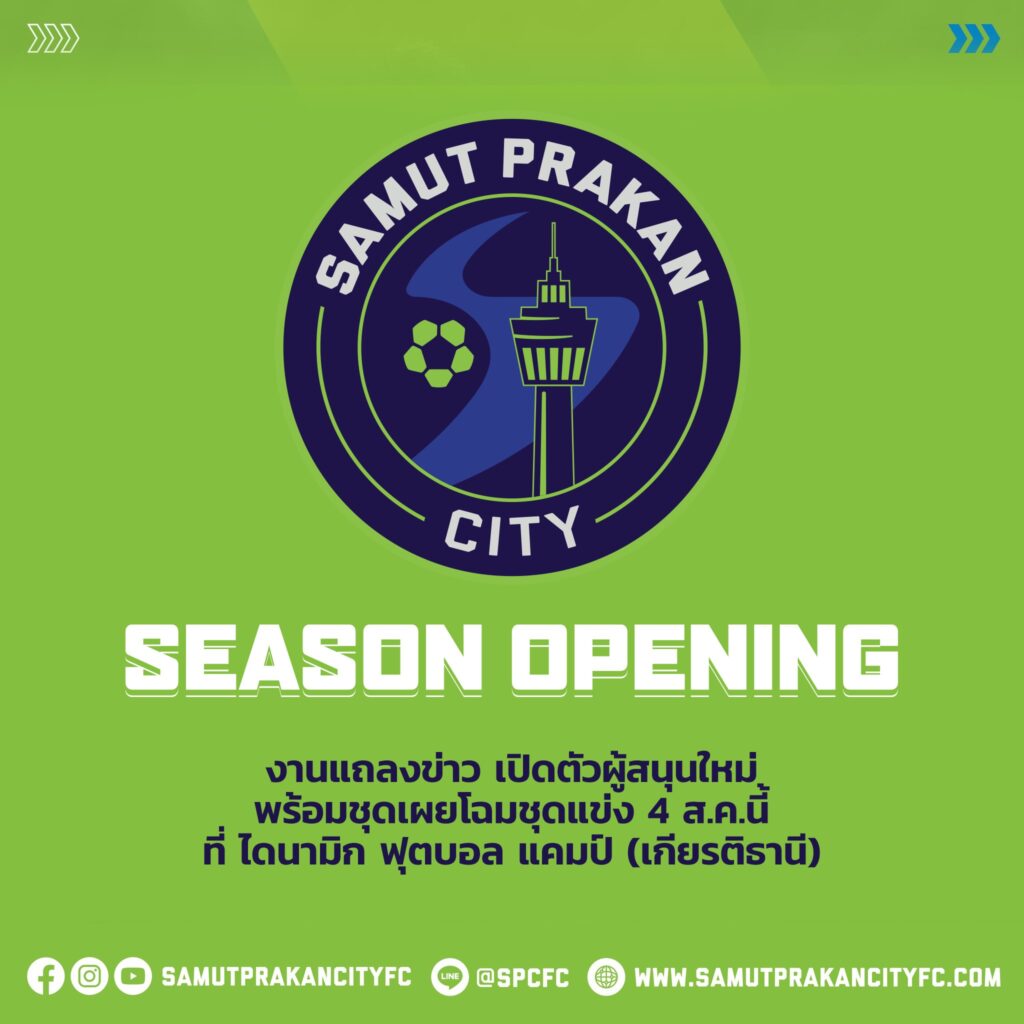 สำหรับกำหนดการแถลงข่าวเปิดตัวผู้สนันสนุน สโมสร สมุทรปราการ ซิตี้ จะมีขึ้นในวันพฤหัสบดีที่ 4 สิงหาคมนี้ ณ ที่สนาม ไดนามิก ฟุตบอล แคมป์ (เกียรติธานี) ตั้งแต่เวลา 13.00 น.เป็นต้นไป