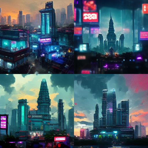 โดยวิธีคือพิมพ์ข้อความลงไปแล้วก็รอสร้างภาพ อย่างรูปนี้ผู้เขียนพิมพ์ไปว่า bangkok cyberpunk in 2090 นี้คือภาพที่ออกมา