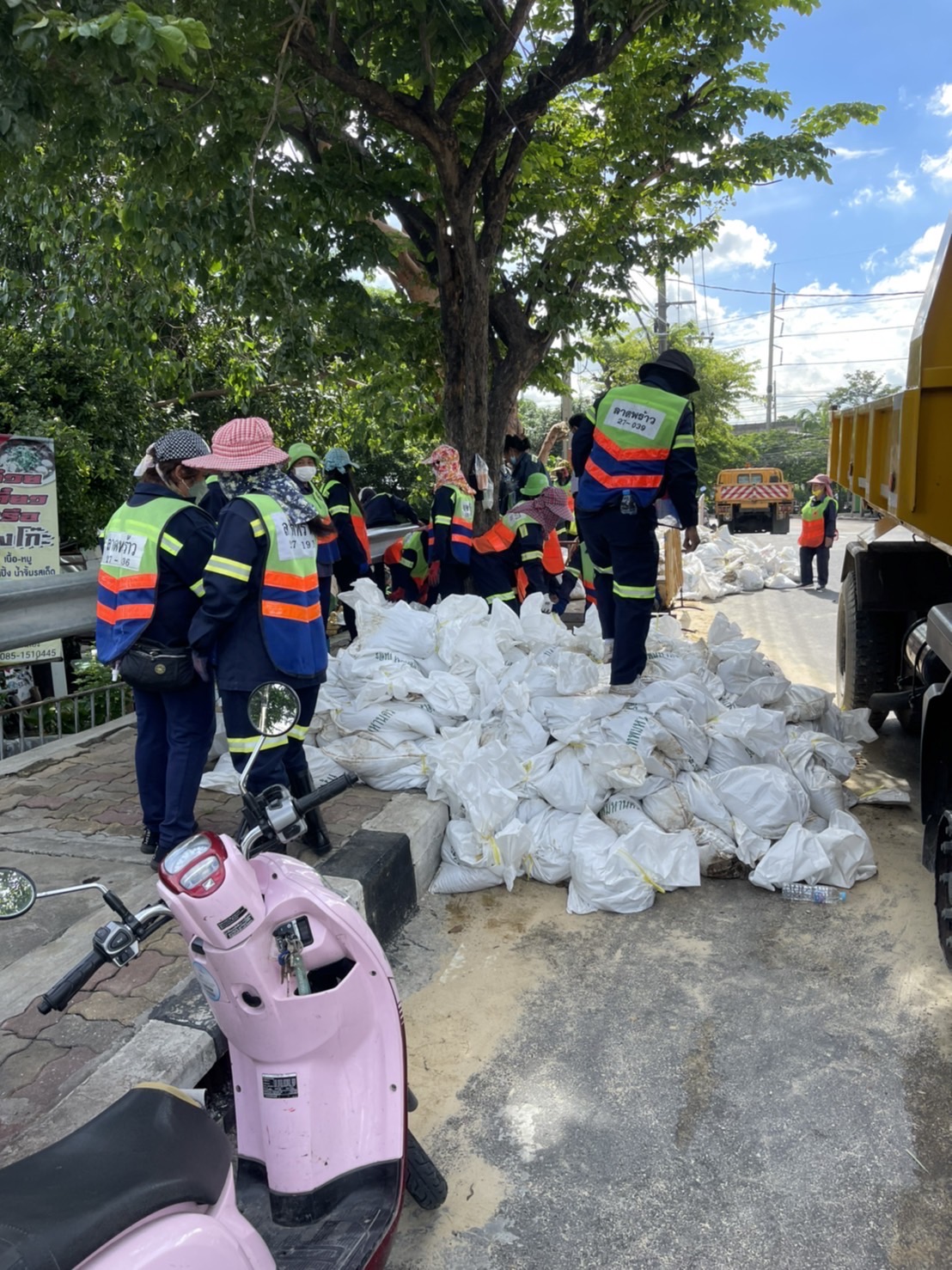 เจ้าหน้าที่ของทางสำนักงานเขตลาดพร้าว กับทางเจ้าหน้าที่ทหาร จึงได้นำกระสอบทราย ไปวางเป็นเขื่อนชั่วคราว เพื่อรองรับพายุตัวใหม่ ที่กำลังจะมา เพราะเวลาน้ำมามันจะไหลเข้าบ้านชาวบ้าน การทำเขื่อน บริเวณดังกล่าว หากมีปริมาณฝนตกลงมาในปริมาณมาก จะได้สูบน้ำจากถนนสุคนธสวัสดิ์ ลงไปในคลองขี้เสือใหญ่ เพื่อไม่ให้น้ำไหลเข้าสู่บ้านเรือนประชาชน