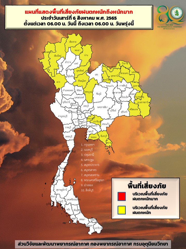 กรมอุตุนิยมวิทยาจะออกประกาศฉบับต่อไปใน วันที่ 6 สิงหาคม พ.ศ. 2565 เวลา 17.00 น.