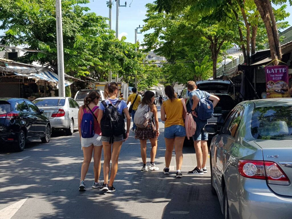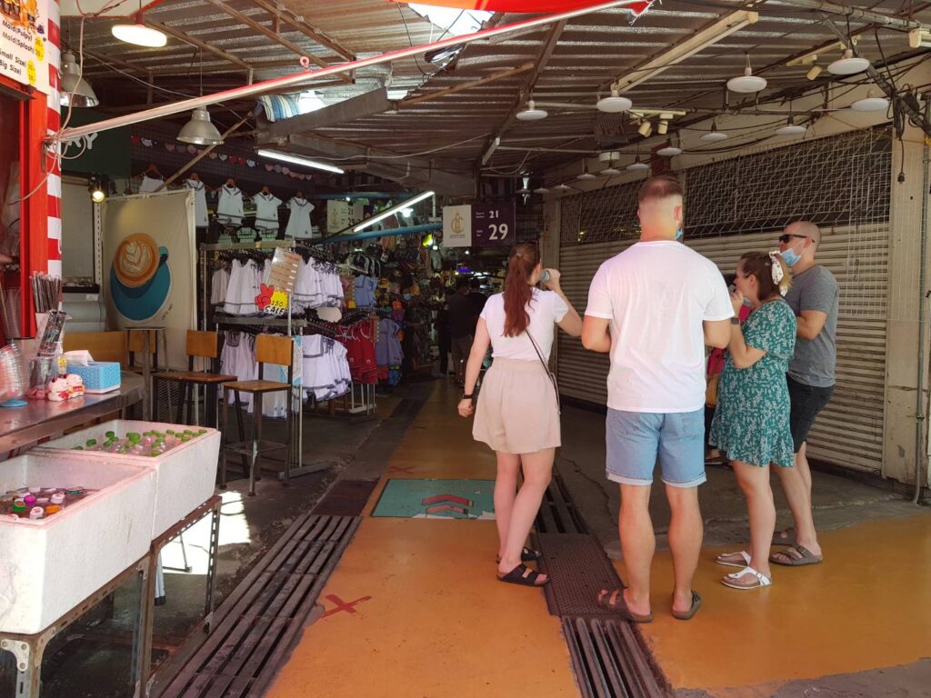 โดยนักท่องเที่ยวต่างชาติบางส่วนไม่สวมใส่หน้ากากอนามัยในพื้นที่สาธารณะซึ่งเป็นพื้นที่โล่งแจ้งแล้วตามการประกาศผ่อนคลายมาตรการของทางรัฐบาล แต่บางส่วนก็ยังคงเลือกสวมใส่หน้ากากอนามัยเพื่อป้องกันความเสี่ยง แต่สำหรับบรรดาพ่อค้าแม่ค้ายังคงมีการสวมใส่หน้ากากอนามัยอย่างเข้มงวด