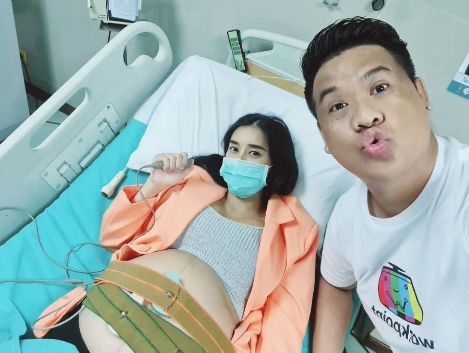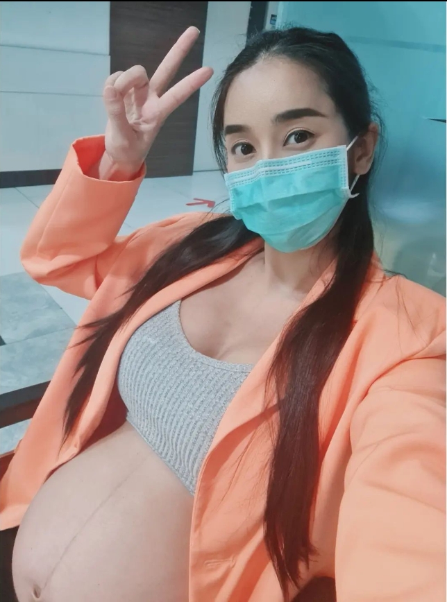 โดยเธอได้โพสต์ภาพคู่สามีที่ดูแลอย่างชิดใกล้ พร้อมระบุข้อความว่า “มาหาคุณหมออีกแว้วจ้า อีก 5 วันคลอดแล้ว วันนี้ปวดท้องหนักเลย เหมือนจะคลอดซะวันนี้เลย เดินแทบไม่ได้เลยจ้า 37weekspregnant 37weeks1days”