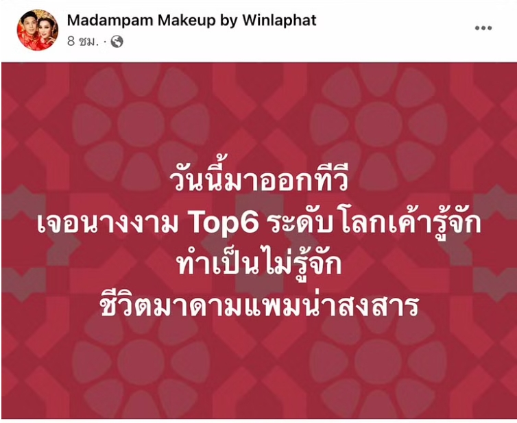 -ก็คือเราเห็นโพสต์นั่นแหละ เราก็เลยงง และทีมงานทุกคนก็เห็นเหมือนกันว่าเราไหว้เขาแล้ว และก็มีทีมคนหนึ่งที่อยู่กับเราด้วย แล้วก็ทีมงานที่อยู่กับเขาด้วย และยังมีทีมงานที่บอกว่าคนนี้คือมาดามแพมนะ เราก็เลยสวัสดีค่ะ แต่พอหลังจากนั้นก็เลยมีเรื่องมีราวขึ้นมา เราก็เลยงงว่ามันเกิดอะไรขึ้น