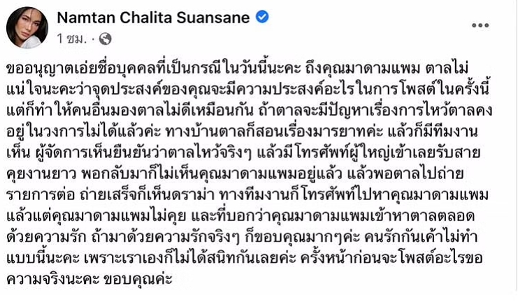 “น้ำตาล ชลิตา” เปิดใจ หลังดราม่าเดือด วอน “มาดามเเพม” อย่าปั่นกระเเส ถ้าป่วยให้ไปรักษา !!