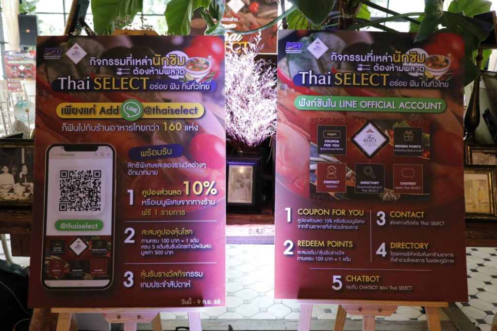 นอกจากนี้ กรมฯ ยังได้เปิดตัวแคมเปญ “Thai SELECT อร่อยฟิน กิน ทั่วไทย” โดยมอบสิทธิประโยชน์มากมายให้กับเหล่านักชิม และผู้สนใจทั่วไป เพียงแค่ Add Line @thaiselect ก็จะได้รับข่าวสาร กิจกรรม โปรโมชันต่างๆ