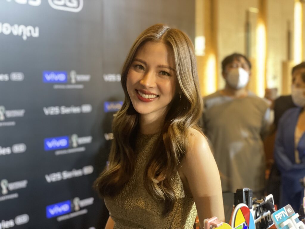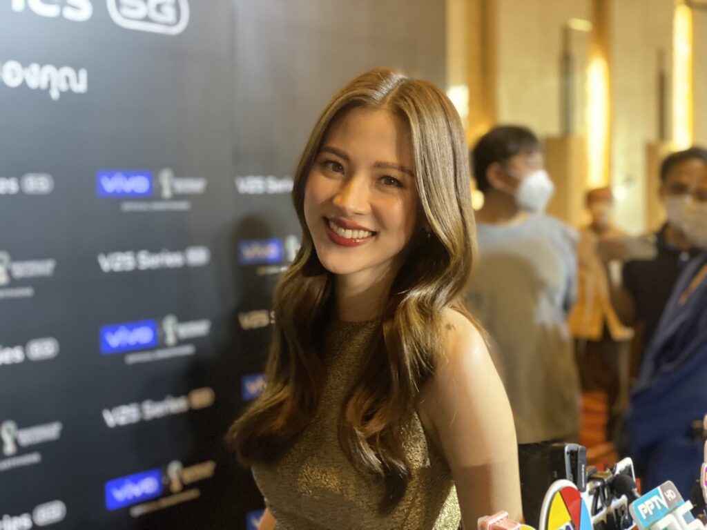 “เจอวินครั้งแรก หลังจากเป็นข่าว ก็พูดคุยกันทั่วไปทักทายปกติค่ะ เรื่องข่าวไม่ได้คุยเลยค่ะ ไม่ได้แซวอะไรกันเลย ต่างคนต่างไม่ได้คิดว่าเป็นเรื่องใหญ่ด้วยค่ะ ทำงานก็เจอกันผ่านไปผ่านมา ไม่เกร็ง น้องน่ารักค่ะ ทีมสไตล์ลิสก็รู้จักกัน ไม่กลัวคนจับตามองค่ะ งานคู่ก็รับได้ เป็นพรีเซนเตอร์ในแบรนด์เดียวกัน งานละครยังไม่มีคู่ค่ะ ถ้ามีโอกาสก็ยินดีค่ะ”