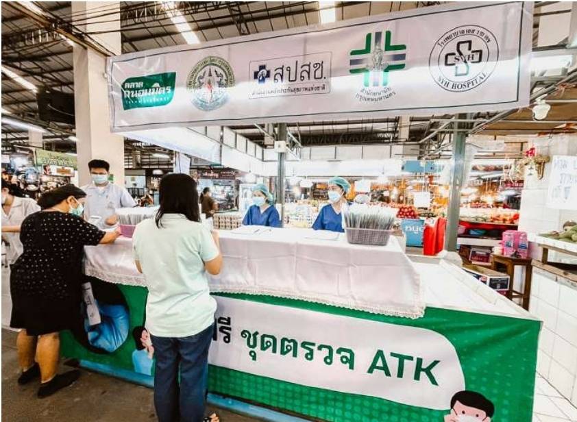 การจัดชุดตรวจ ATK เพื่อให้ประชาชนกลุ่มเสี่ยงสามารถตรวจเชื้อและเข้าสู่กระบวนการรักษาด้วยตนเอง ซึ่งมีการสื่อสารกับประชาชนโดยตรงผ่าน “แอปพลิเคชันเป๋าตัง” เพื่อแจ้งรับชุดตรวจ ATK ได้ที่หน่วยบริการใกล้บ้าน