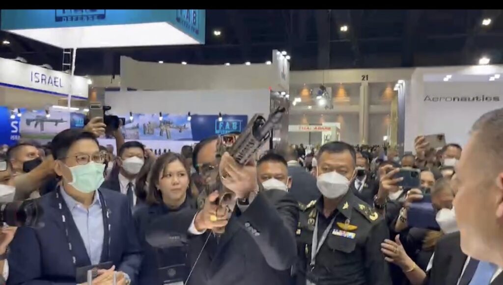 โดยมี บริษัทอาวุธชั้นนำของโลกมาออกบูทแสดงจำนวนมาก ทั้งนี้ พล.อ.ประยุทธ์ ได้ทดลองขึ้นไปนั่งปืนใหญ่อัตตาจรล้อยาง ATMG ขนาด 155 มิลลิเมตร พร้อมดูอุปกรณ์ภายใน นอกจากนี้พล.อ.ประยุทธ์ได้ทดลองยกปืนยาวขึ้นเล็งซึ่งเป็นปืนขนาด 7.62 *51 มม. รุ่น SIG-MCX รุ่น XM 5