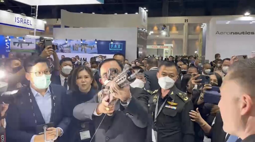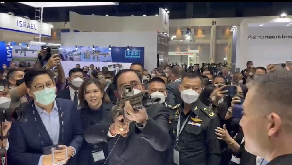 โดยมี บริษัทอาวุธชั้นนำของโลกมาออกบูทแสดงจำนวนมาก ทั้งนี้ พล.อ.ประยุทธ์ ได้ทดลองขึ้นไปนั่งปืนใหญ่อัตตาจรล้อยาง ATMG ขนาด 155 มิลลิเมตร พร้อมดูอุปกรณ์ภายใน นอกจากนี้พล.อ.ประยุทธ์ได้ทดลองยกปืนยาวขึ้นเล็งซึ่งเป็นปืนขนาด 7.62 *51 มม. รุ่น SIG-MCX รุ่น XM 5