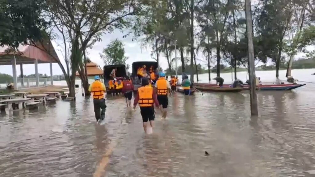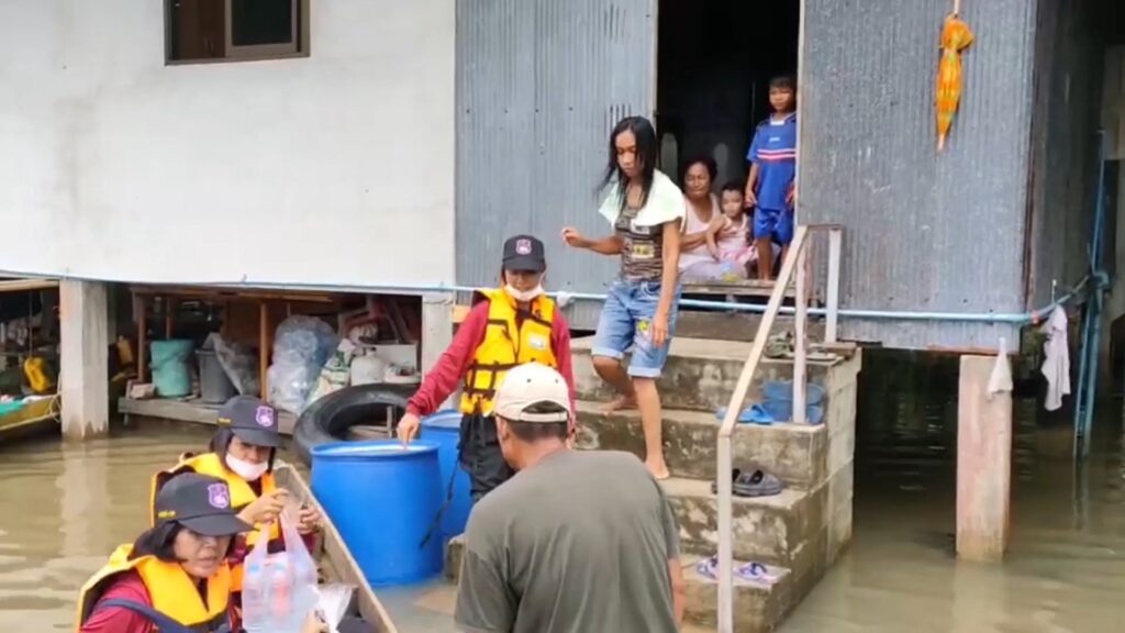 ที่จ.สงขลา สถานการณ์น้ำท่วมในพื้นที่ริมทะเลสาบทั้ง 5 อำเภอ ตั้งแต่อ.ระโนด กระแสสินธ์ สทิงพระ สิงหนคร และอ.ควนเนียงซึ่งขณะนี้ระดับน้ำยังไม่ลดลงและกินเวลายื้ดเยื้ออีกหลายวัน เพราะมีมวลน้ำจาก จ.พัทลุง ไหลมาสมทบ ล่าสุดหน่วยงานที่เกี่ยวข้องทั้งส่วนราชการและภาคเอกชนได้ลงพื้นที่ไปช่วยเหลือชาวบ้านที่ถูกน้ำท่วม โดยเฉพาะชาวบ้านที่มีบ้านเรือนอยู่ลึกเข้าไปติดริมทะเลสาบสงขลารถเข้าไปไม่ถึงต้องใช้เรือเข้าออก เช่นในวันนี้ตำรวจตระเวนชายแดนภาค 4 ร่วมกับนักศึกษาจิตอาหารมหาวิทยาลัยทักษิณ นำถุงยังชีพและน้ำดื่ม จำนวน 500 ชุด ล่องเรือเข้าไปแจกให้กับชาวบ้านในพื้นที่หมู่ที่ 6 บ้านห้วยลึก อ.ควนเนียง ซึ่งหลายครอบครัวเสบียงเริ่มร่อยหรอเพราะถูกน้ำท่วมมาเกือบ1สัปดาห์ ต้องอาศัยอยู่ในบ้านที่ถูกน้ำล้อมรอบ และปริมาณน้ำแทบจะไม่ลดลง และบางครอบครัวก็มีเด็กเล็กด้วย
