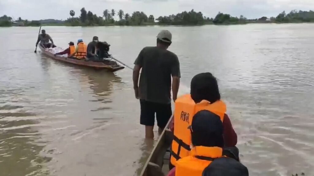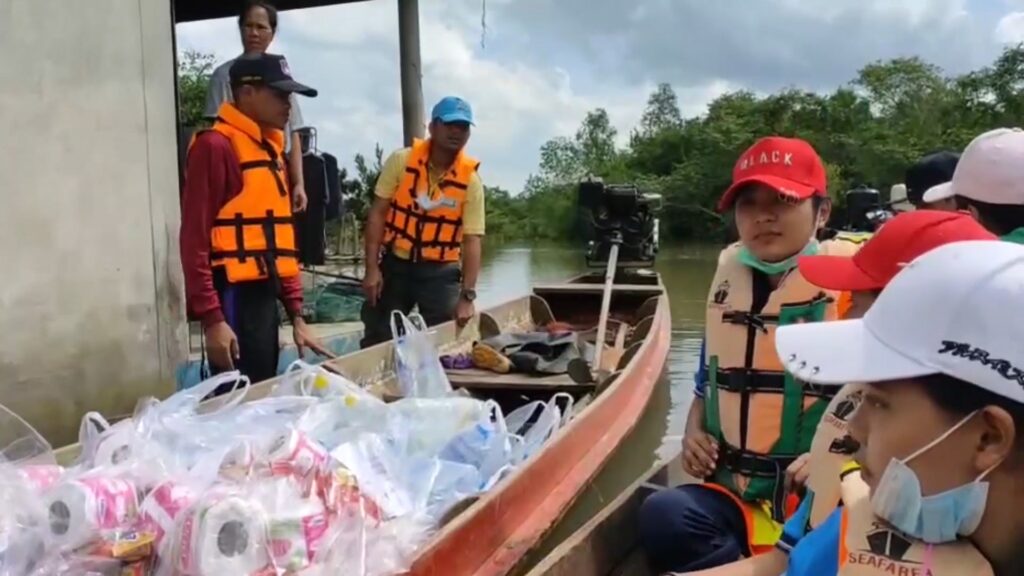 ตชด.ภ.4ล่องเรือช่วยเหลือชาวบ้านริมทะเลสาบสงขลา