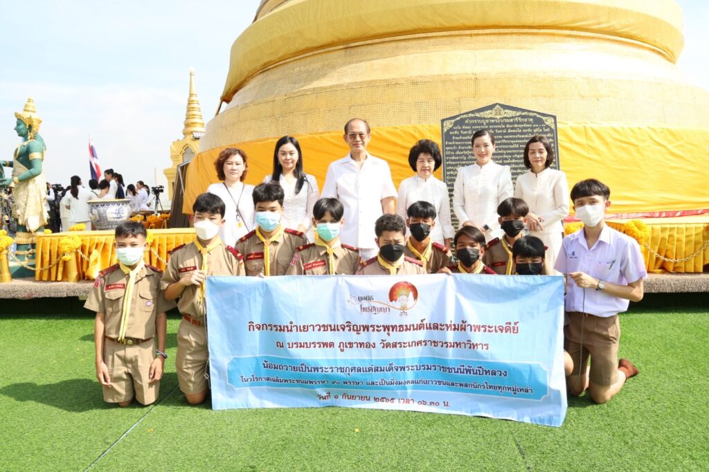 เมื่อวันที่ 1 กันยายนที่ผ่านมา ณ พระมหาเจดีย์ บรมบรรพต ภูเขาทอง วัดสระเกศราชวรมหาวิหาร ทางมูลนิธิโพธิปัญญา และ โครงการปลูกต้นกล้าโพธิปัญญา สู่แดนพุทธองค์ โดยคุณ ศรัณย์ วิรุตมวงศ์ ประธานมูลนิธิฯ และประธานโครงการฯ พร้อมด้วย ดร.โก้ ธีรศักดิ์ พันธุจริยา รองประธานมูลนิธิโพธิปัญญา และประธานฝ่ายจัดหาทุน โครงการปลูกต้นกล้าฯ จัดให้มีกิจกรรมร่วมจิตน้อมใจถวายพระราชกุศลแด่สมเด็จพระนางเจ้าสิริกิติ์ พระบรมราชินีนาถ พระบรมราชชนนีพันปีหลวง ในวโรกาสเฉลิมพระชนมพรรษา 90 พรรษาโดยนำเยาวชนและพุทธศาสนิกชนเจริญพระพุทธมนต์และห่มผ้าบูชาพระบรมสารีริกธาตุ พร้อมทั้งเหล่าดาราจิตกุศล อาทิ แพนเค้ก เขมนิจ , ดร.โก้ ธีรศักดิ์ พันธุจริยา,จุ๊บแจง วิมลพันธ์ ,แอน มรกต ,หลิน ณุศรา,ปุ๋ย นิทัศน์ และ อิ่งอ้อย สิทธิวดี,และทีมมิสเอิร์ธ ไทยแลนด์ นำโดย สปาย ชวันภัสร์ คงนิ่ม Miss Earth Thailand 2022