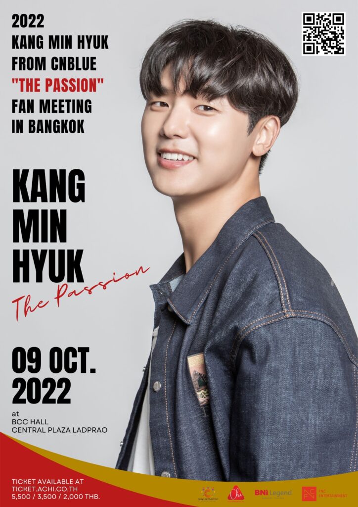 สิ้นสุดระยะห่างแห่งความคิดถึง เมื่อผู้จัดใจดี อะชิ แอคทิเวชั่น จำกัด (A CHI ACTIVATION CO., LTD.) และบริษัท ชาณแอคทิเวชั่น จำกัด (CHAN ACTIVATION CO., LTD.)พร้อมแล้วที่จะจัดแฟนมีตติ้งครั้งใหม่ของนักดนตรี-นักแสดงหนุ่มชาวเกาหลีจากสังกัด FNC ENTERTAINMENTคนดีคนเดิมเพิ่มเติมคือความเติบโตและความสามารถซึ่งมีพัฒนาการอย่างไม่หยุดยั้ง“คังมินฮยอก (KANG MIN HYUK)”กับการกลับมาเยือนประเทศไทยอีกครั้ง กับงานที่มีชื่อว่า“2022 คังมินฮยอก ฟรอม ซีเอ็นบลู‘เดอะแพสชั่น’ แฟน มีตติ้ง อิน แบงคอก” (2022 KANG MIN HYUK FROM CNBLUE ‘THE PASSION’ FAN MEETING IN BANGKOK)งานนี้ประกาศล่วงหน้าเพื่อให้เหล่าบอยซ์(“Boice” ชื่อแฟนคลับของ CNBLUE) เคลียร์คิวกันให้พร้อมเพื่อนัดรับวัคซีนแห่งความสุขเข็มกระตุ้น ในวันอาทิตย์ที่ 9ตุลาคม 2565นี้ ที่ บีซีซี ฮอลล์เซ็นทรัล พลาซ่า ลาดพร้าว