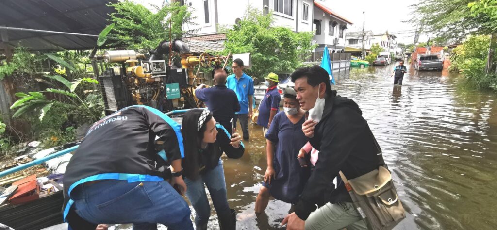 เพื่อให้แก้ไขปัญหาได้มากกว่าที่ดำเนินการอยู่ จากนั้น เดินทางไปหมู่บ้านเคหะนคร2 ลาดกระบัง 36 และอีกหลายแห่ง เพื่อสนับสนุนการทำงานของเครื่องสูบน้ำและให้กำลังใจพี่อาสาสมัครในหมู่บ้านในการดูแลเครื่องสูบน้ำให้ทำงานได้อย่างมีประสิทธิภาพ