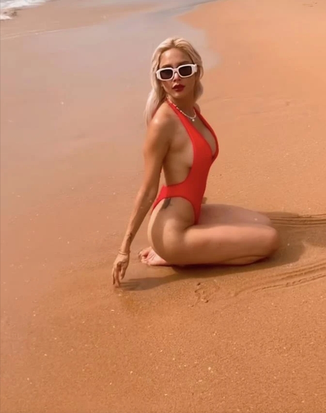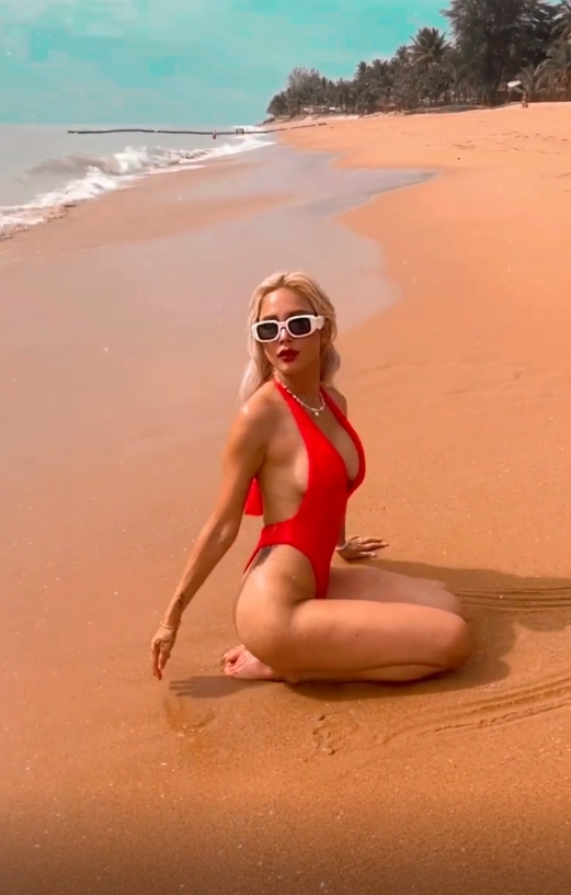ล่าสุดเจ้าตัว ออกมาเสิร์ฟความหุ่นแซ่บชนิดร้อนแรงไฟลุก สวมบิกินีสีแดงตัวจี๊ด ทั้งแหวกหน้า เว้าหลัง จนเห็นเต้าอึ๋มทะลัก นอนคลุกทรายเล่นน้ำทะเลริมชายหาด ด้วยลีลาท่าโพสสุดวาบหวิว อวดบั้นท้ายยั่วๆ มองเห็นก้นกลมเด้งๆ บวกผิวสีแทนเนียนสวยจนต้องตะลึง