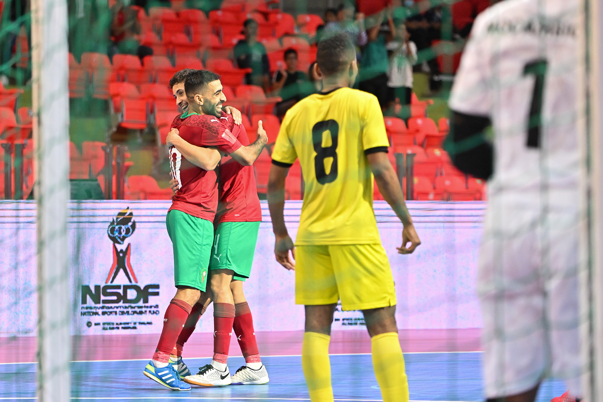 ครึ่งแรก โมร็อกโก ออกสตาร์ทเกมได้ดุดัน ก่อนยิงนำ 2-0 จาก เอล เฟสนี่ เหมาคนเดียว น.3 และ น.5 แต่ โมซัมบิก ไม่ยอมง่าย ๆ ยิงไล่มา 1-2 จาก โจเซ่ ดาซิลวา น.16 อย่างไรก็ตาม ครึ่งหลัง โมร็อกโก ทำเพิ่มอีก 2 ประตูจาก ยูเซฟ โจอูด น.38 และ เอล เมสราร์ น.40 นำห่าง 4-1 ก่อน โมซัมบิก ยิงคืนได้ลูกเดียวจาก โจเซ ดาซิลวา น.40 จบเกม โมร็อกโก ชนะไป 4-2 มีเพิ่มเป็น 4 คะแนนจาก 2 นัด การันตีเข้ารอบตัดเชือกแน่นอนแล้ว ขณะที่ โมซัมบิก ต้องลุ้นนัดสุดท้ายกับ ทีมชาติไทย
