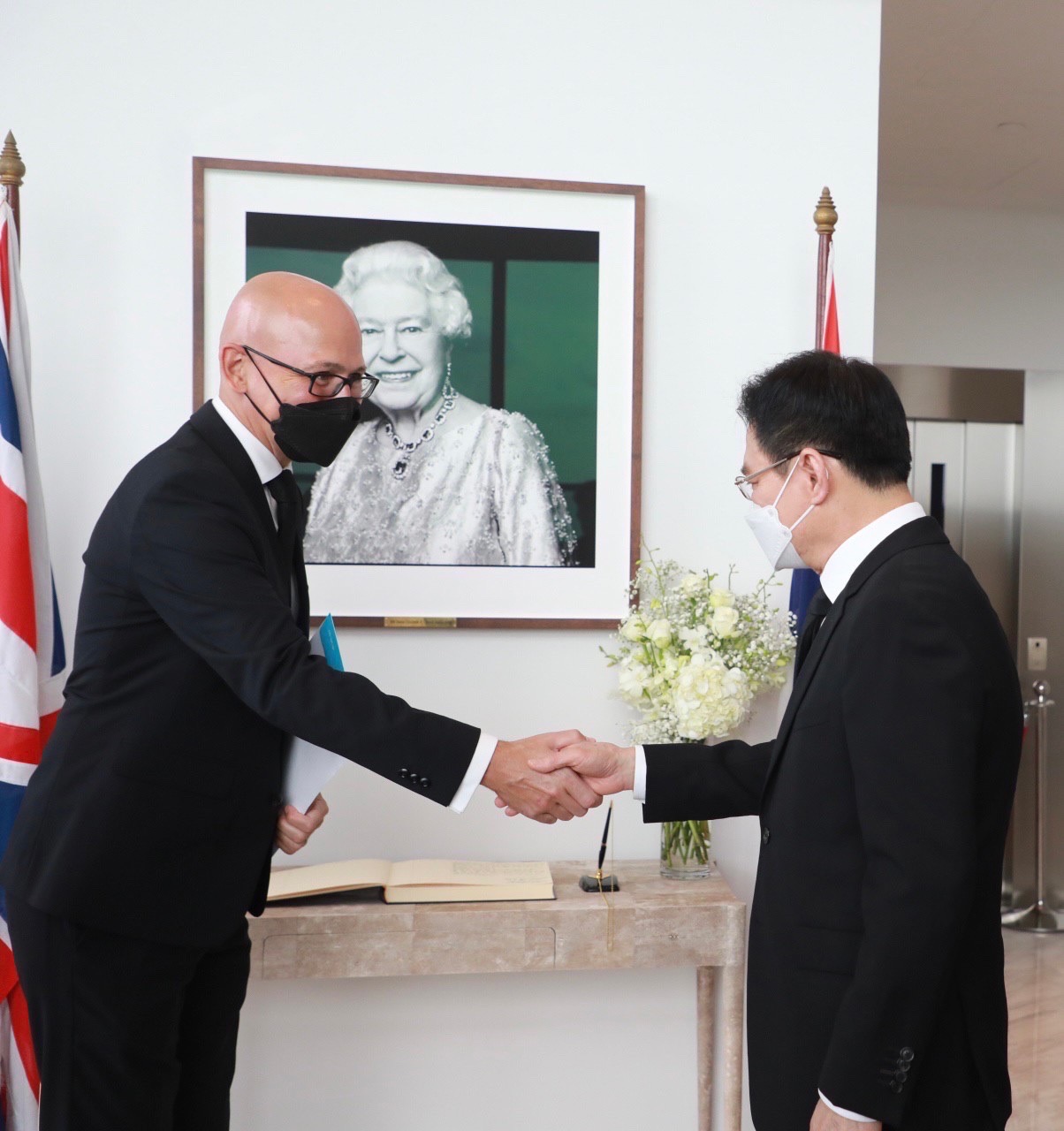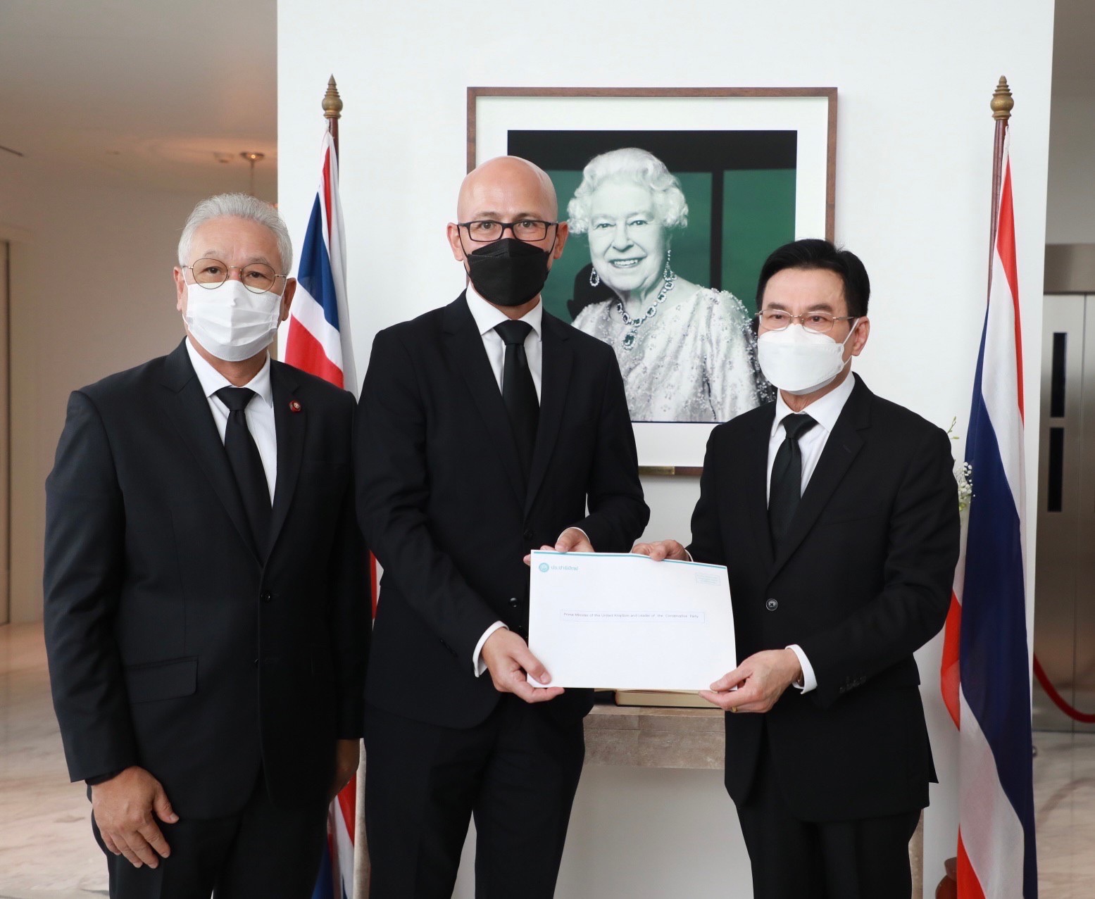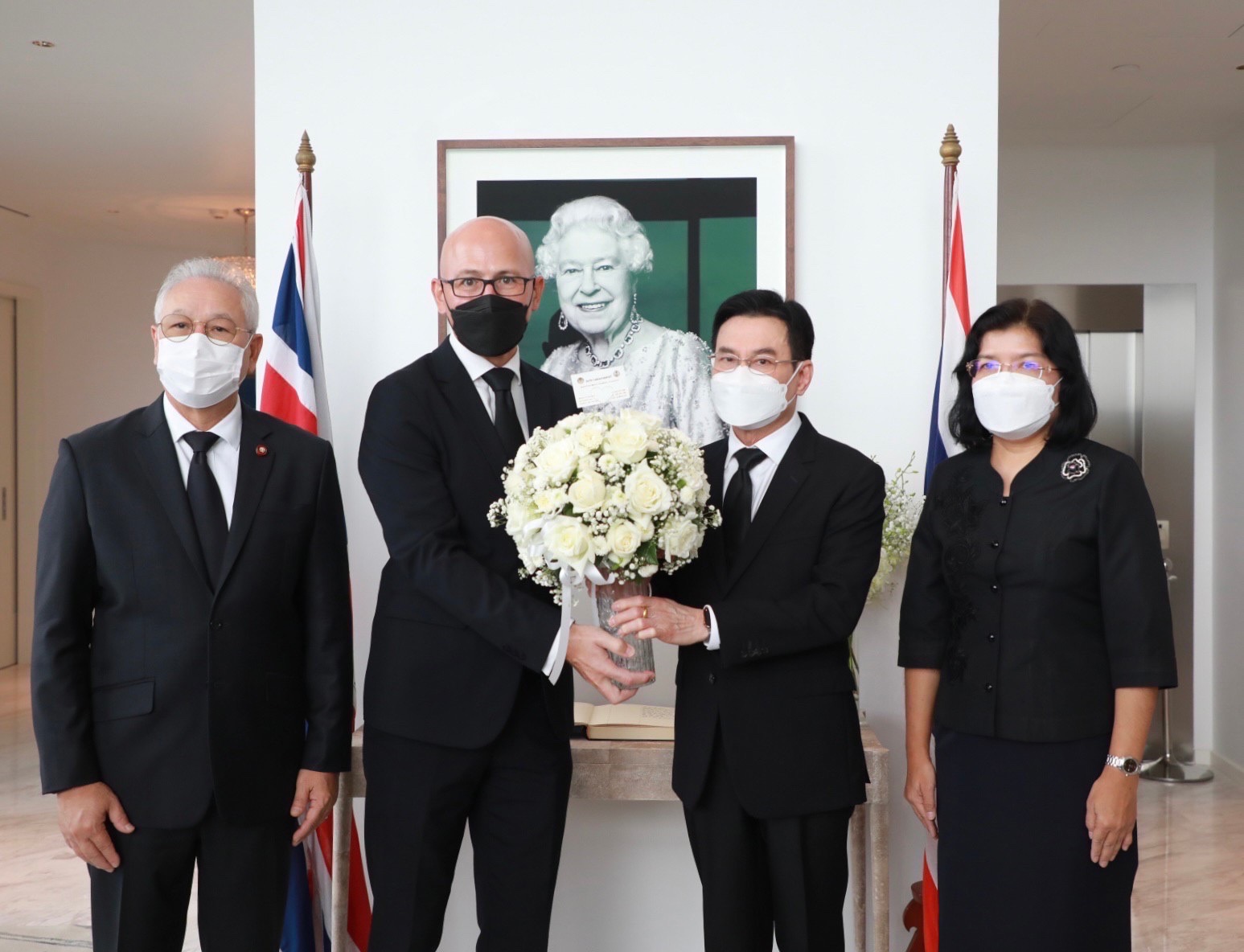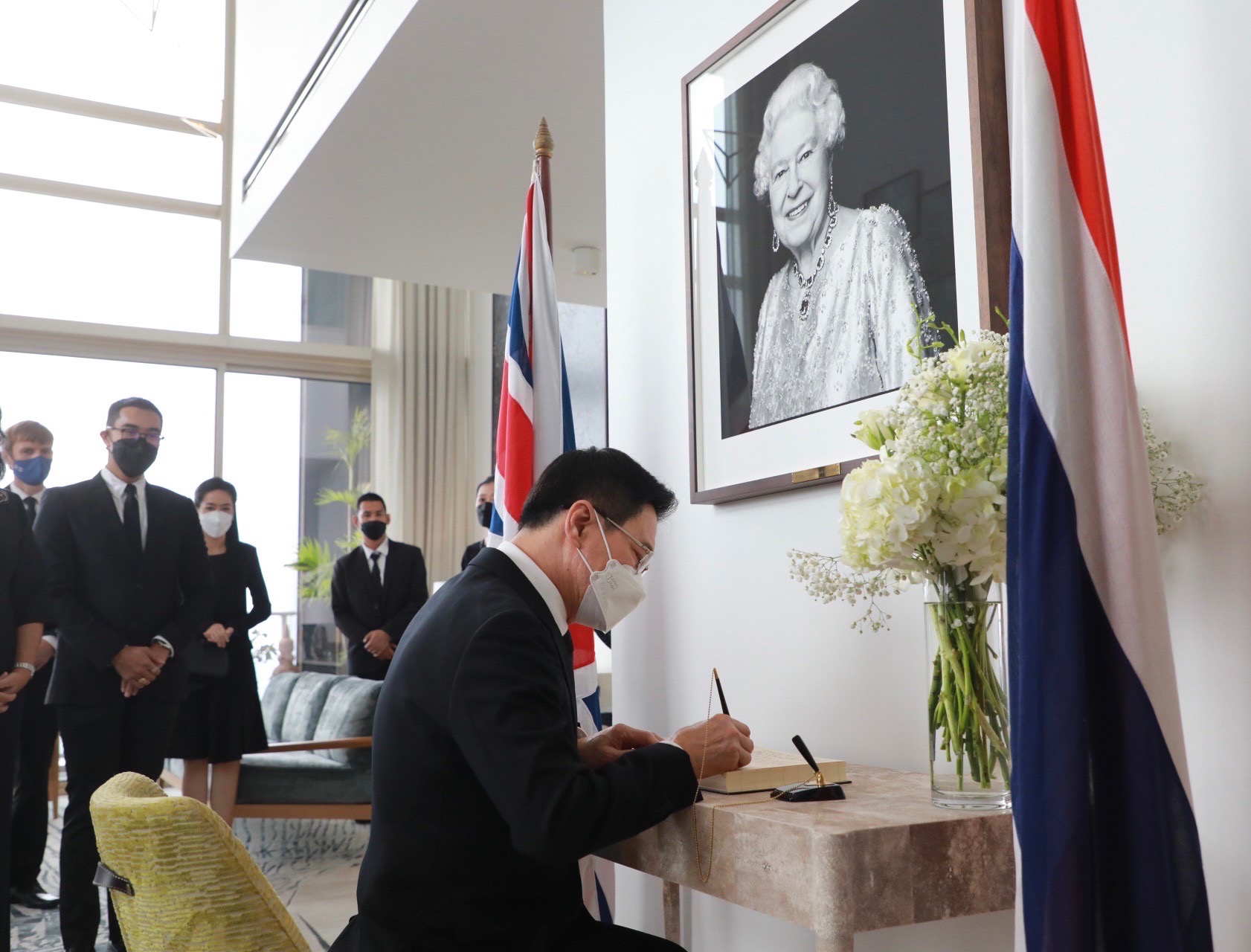 ร่วมลงนาม และมอบสารถวายความอาลัย ต่อการเสด็จสวรรคตของสมเด็จพระราชินีนาถเอลิซาเบธที่ 2 แห่งสหราชอาณาจักร โดยมีนายมาร์ค กูดดิ้ง (H.E. Mr. Mark Gooding) เอกอัครราชทูตสหราชอาณาจักรประจำประเทศไทยให้การรับรอง