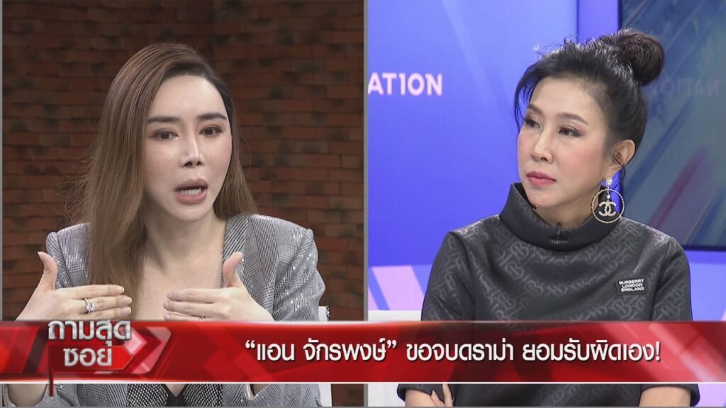 รายการ “ถามสุดซอย” ออกอากาศวันจันทร์-ศุกร์ เวลา 10.10-11.00 น. ทางช่องเนชั่น ช่อง 22 ดำเนินรายการโดย “เอิ๊ก พรหมพร ยูวะเวส” วันนี้ (11 ก.พ.) สัมภาษณ์ “แอน จักรพงษ์” ทุกเรื่องดราม่าที่ต้องเจอ