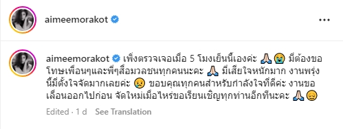 โดยในช่วงเย็นของวันที่ (16 ก.ย. 2565) “เอมมี่ มรกต” ได้โพสต์แจ้งข่าวผ่านทางอินสตาแกรมส่วนตัวว่า… “เพิ่งตรวจเจอเมื่อ 5 โมงเย็นนี้เองค่ะ มี่ต้องขอโทษเพื่อนๆ และพี่ๆ สื่อมวลชนทุกคนนะคะ มี่เสียใจหนักมาก งานพรุ่งนี้มี่ตั้งใจจัดมากเลยค่ะ ขอบคุณทุกคนสำหรับกำลังใจที่ดีค่ะ งานขอเลื่อนออกไปก่อน จัดใหม่เมื่อไหร่ขอเรียนเชิญทุกท่านอีกทีนะคะ”