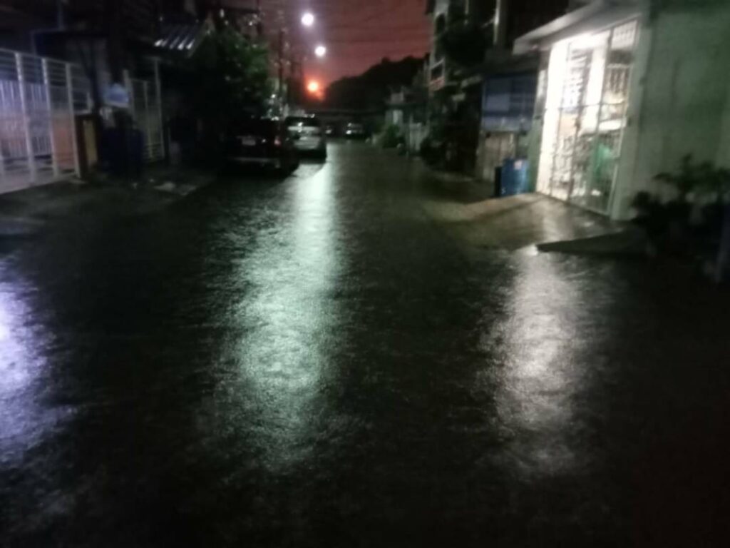 จุดเฝ้าระวังในพื้นที่ หมู่บ้านเศรษฐกิจ บริเวณวงเวียนทะเลสาบ น้ำท่วมขัง ระดับน้ำ 15 ซม.