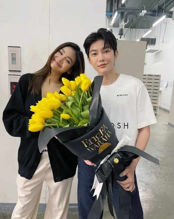 ณวัฒน์ : น้องเป็นคนที่เต็มที่อยู่แล้ว ประมาณสักเดือนกว่าๆ ที่ผ่านมามีความรู้สึกว่าน้องจะมีโมเมนต์บางโมเมนต์ที่เรารู้สึกได้ว่า… แล้วน้องไปทำงานค่อนข้างตรงเวลา แต่หลังๆ อาจจะดูช้าลงบ้าง แล้วมีคนแจ้งมาว่าไปเจอที่นู้นบ้าง ที่นี่บ้างเวลายามค่ำคืน หลังจากที่รถกองไปส่งที่คอนโดก็ไปที่นู้น ที่นี่บ้าง ก็เป็นห่วงเป็นใย เห็นว่ามีคนเข้ามาในชีวิตก็คือ ตอ.นอ.ก็เลยต้องโฟกัสมากขึ้น ต้องยอมรับนะครับ จะเรียกว่ากล่าวหาเลยก็ได้ คนที่ชื่อ ตอ.นอ.เนี่ย มาทำให้วิถีของคนที่มีความรับผิดชอบเนี่ย ได้มีความรับผิดชอบที่ลดลงบ้าง เพราะว่าค่อนข้างที่จะจู่โจมค่อนข้างเยอะ และพยายามแสดงสัญญาลักษณ์อยู่ตลอดเวลา เช่น ส่งดอกไม้ตามที่ต่างๆ โพสต์นู้น ทำนี่ แล้วก็พยายามไปคุยข้างหลังถึงความมุ่งมั่นที่จะพยายามเข้ามาสนิทกับอิงฟ้า มันแน่นอนผู้หญิง งานเยอะๆ เป็นคนที่ติสท์ๆ ด้วย พอถูกจู่โจมมากๆ ก็อาจจะลำบาก ก็มีความเปลี่ยนแปลงมองได้เห็น