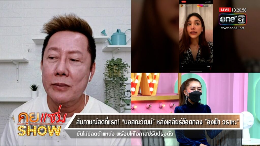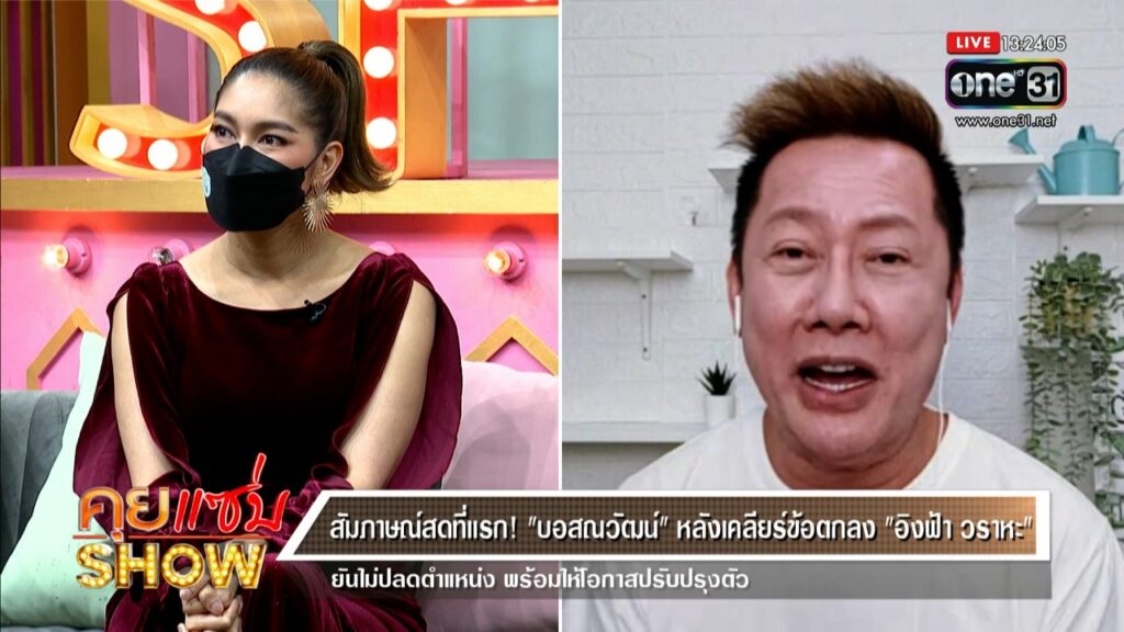หลังจากที่ ณวัฒน์ อิสรไกรศีล ได้เคลียร์ใจกับ อิงฟ้า วราหะ มิสแกรนด์ไทยแลนด์ 2022 เผยถึงมาตรการในการจัดการชีวิตอิงฟ้าหลังจากนี้ ทั้งลงมาดูแลเองทุกเรื่อง ทั้งงานและเรื่องส่วนตัว ไปไหนต้องไลน์บอก ล่าสุด ณวัฒน์ ได้เปิดใจอีกครั้งหลังไลฟ์สดชี้แจงเรื่องดังกล่าวอีกครั้ง ผ่านทางรายการ คุยแซ่บshow ทางช่อง one31 ที่มีเป็กกี้ศรีธัญญา และเบนซ์ พรชิตา เป็นพิธีกรดำเนินรายการ