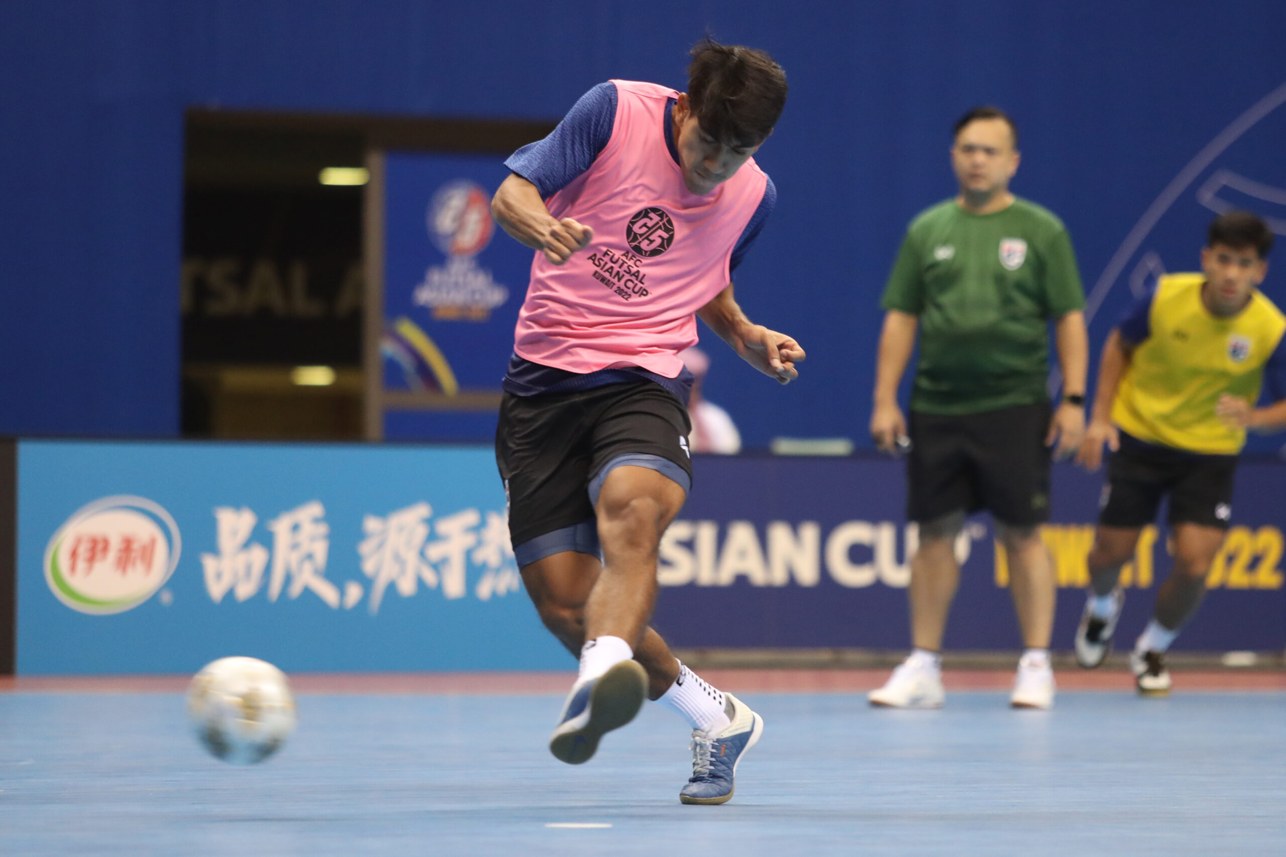 วันที่ 25 กันยายน 2565 เวลา 18.00น. ตามเวลาท้องถิ่น ประเทศคูเวต คาร์ลอส เซซาร์ เฮดโค้ชชาวสเปนนำทัพขุนพลฟุตซอลทีมชาติไทย ทั้ง 14 แข้ง เดินทางลงฝึกซ้อมสนามแข่งขันจริง ซาอัด อัล อับดุลลาห์ ฮอลล์ คูเวตซิตี้ ก่อนลุยศึก เอเอฟซี ฟุตซอล เอเชี่ยนคัพ2022 ที่จะเปิดสนามนัดแรกในวันที่ 27 กันยายน นี้ พบทีมชาติอิรัก