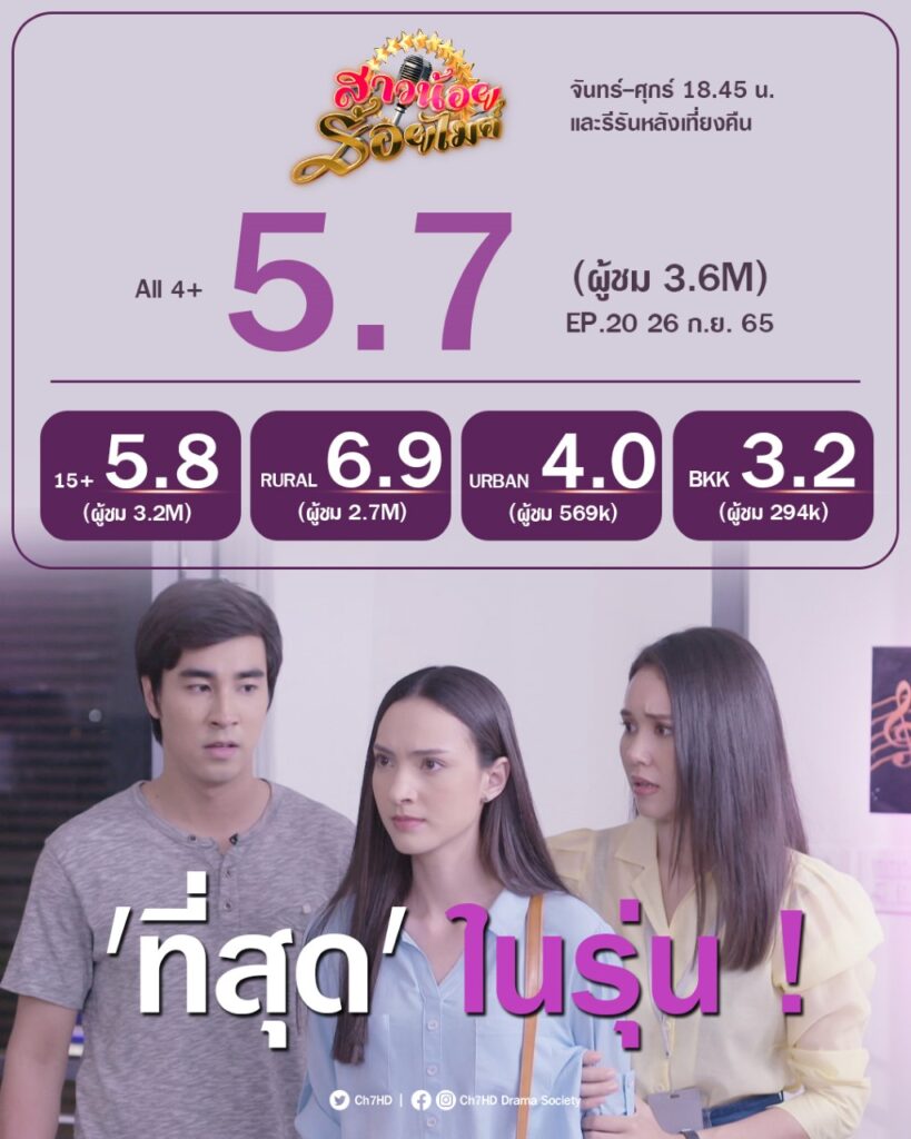 ติดตามชมละคร “สาวน้อยร้อยไมค์” ทุกวันจันทร์ – ศุกร์ เวลา 18.45 น. ทางช่อง 7HD กด 35 และ Facebook Live : Ch7HD หรือรับชมย้อนหลังได้ทาง BUGABOO.TV
