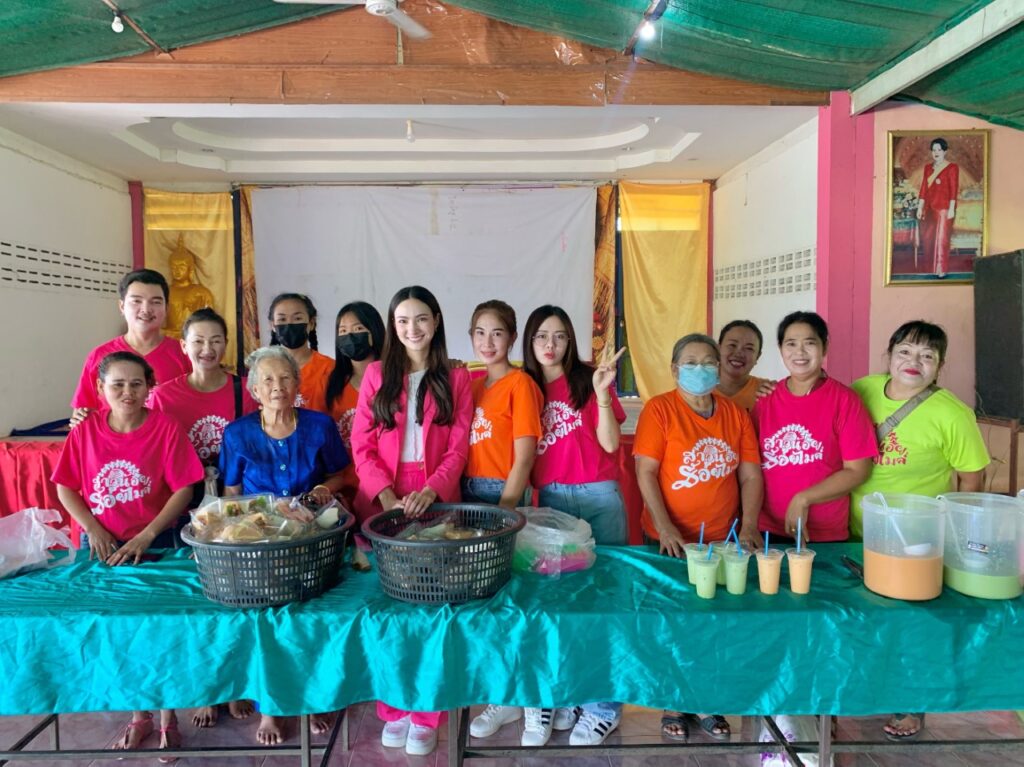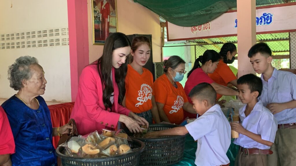 วันนั้นนอกจากจะได้พูดคุยแนะนำน้อง ๆ แล้ว แอนน่าและครอบครัว คุณยาย พี่ชาย พี่สะใภ้และญาติ ๆ ก็ได้ทำขนมไปแจกน้อง ๆ ที่โรงเรียนบ้านต้อน ด้วยค่ะ ซึ่งเป็นโรงเรียนที่อยู่ใกล้บ้านค่ะ การกลับบ้านไปครั้งนี้เป็นความรู้สึกที่อบอุ่นมาก ๆ ค่ะ เพราะนอกจากจะได้เจอกับทุกคนในครอบครัวแล้ว ได้เจอคุณครูที่เคยสอนแอนน่าตอนเด็ก ๆ ได้เจอน้อง ๆ ที่เป็นรุ่นน้องในโรงเรียนที่เราเคยเรียน ทุกคนน่ารักมากค่ะ น้องบางคนก็มาขอลายเซ็น บอกว่าดูละครสาวน้อยร้อยไมค์ทุกวันเลย เป็นกำลังใจให้ หล้า ตัวละครของเราอยู่นะ น้องบางคนก็มาร้องเพลงประกอบละคร สาวน้อยร้อยไมค์ พร้อมกับเต้นโชว์เราด้วย คือแอนน่าดีใจมาก เป็นความรู้สึกที่เราได้รับพลังงานบวกกลับมาเต็ม ๆ ทำให้เรามีกำลังใจ มีแรงที่จะกลับมาตั้งใจทำงานต่อค่ะ