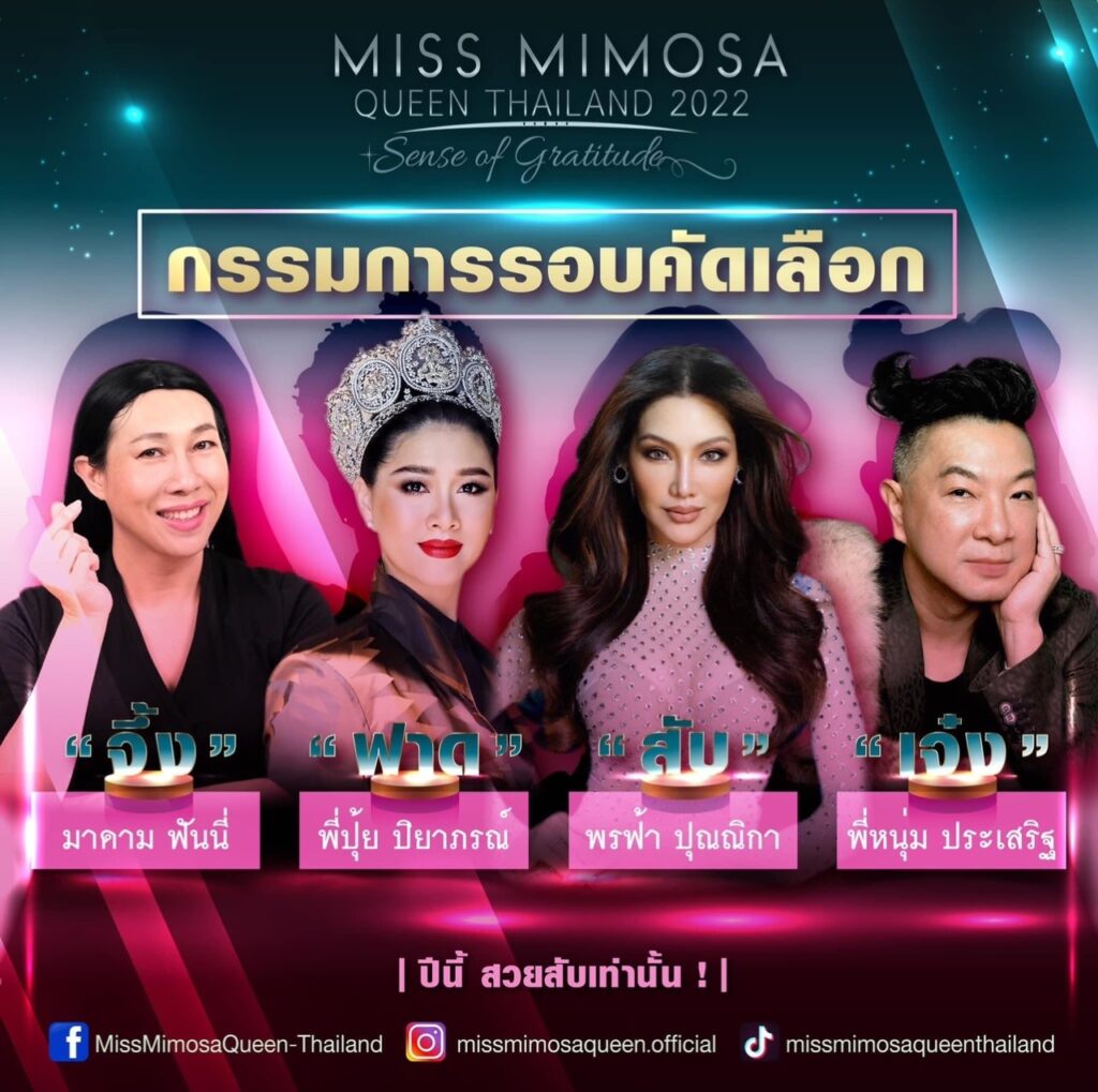 ขีดสุดแห่งความปังกับการเปิดตัวเวทีการประกวดสุดยิ่งใหญ่กำลังจะเริ่มต้นขึ้น! อีกครั้งที่เมืองไทย การคัมแบ็กของเวทีการประกวดสาวประเภทสอง มิสมิโมซ่าควีนไทยแลนด์ 2022 (Miss Mimosa Queen Thailand 2022 ) สาวงาม จิตสาธารณะ ยืนหนึ่งความโดดเด่นทั้งมิติใหม่จัดเต็มรูปแบบการประกวดความสวยปังอลังการที่ไม่เหมือนใคร พร้อมสะกด ทุกสายตาแฟนๆทั่วโลก ภายใต้สโลแกน “งดงามอย่างมีคุณค่า มิโมซ่า ควีน ไทยแลนด์” ไฮไลท์! การรวมตัวแม่ของวงการนางงามที่จะมาร่วมสร้างปรากฏการณ์ครั้งสำคัญ เริ่มสตาร์ทเปิดเวทีพร้อมยลโฉม 24 คนสุดท้ายครั้งแรก! ใน งานแถลงข่าว มิสมิโมซ่าควีนไทยแลนด์ 2022 (Miss Mimosa Queen Thailand 2022) วันพฤหัสบดีที่ 5 ตุลาคม 2565 เวลา 14.00-17.00 น โรงละครเคแบงก์สยามพิฆเนศ สยามสแควร์วัน