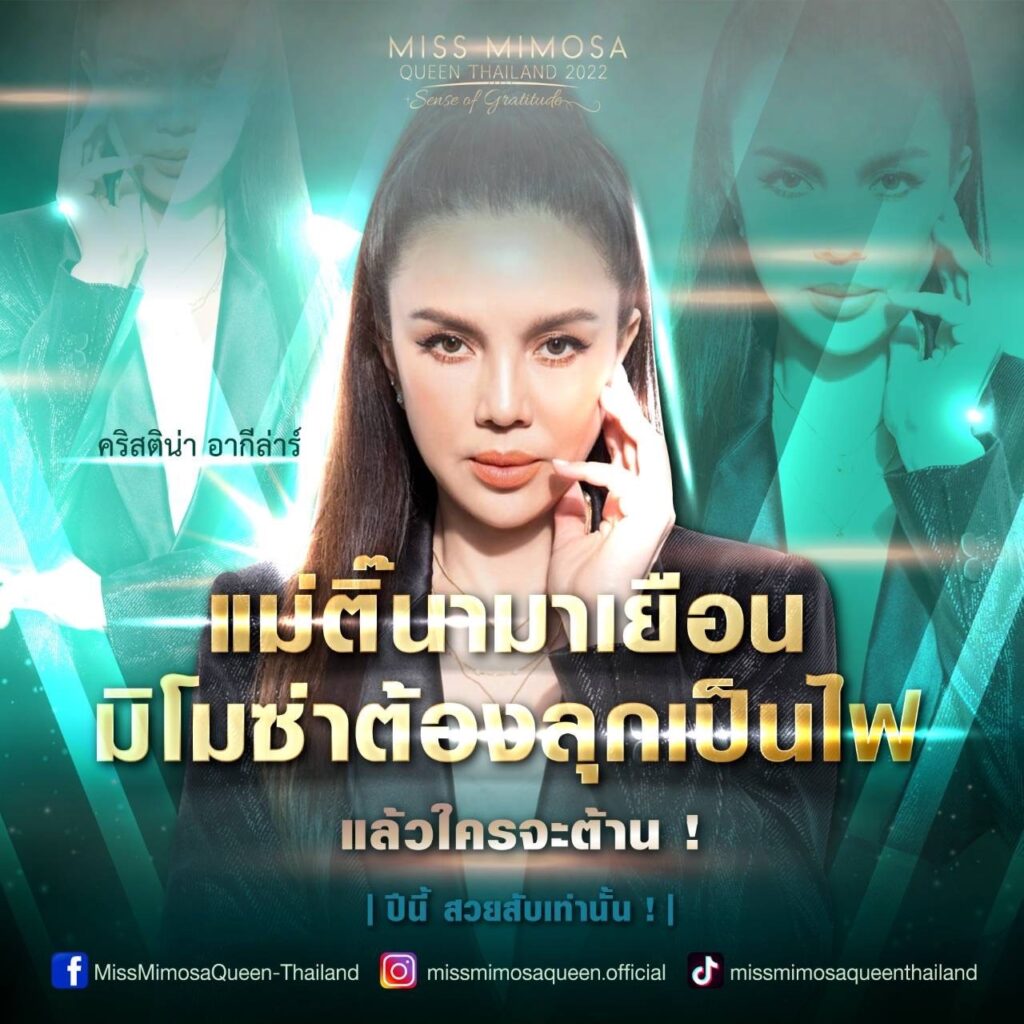 พร้อมเตรียมพบกับโชว์อลังการยิ่งใหญ่สมการรอคอยทีเด็ดตัวแม่ของวงการขวัญใจสาวสองตลอดกาล ติ๊น่า คริสติน่า อากีล่าร์ จะมาสร้างความเซอร์ไพรส์ในรอบ 32 ปีด้วยการขึ้นเวทีการประกวดสาวงามในรอบตัดสิน การันตีได้ว่าการปรากฏตัวครั้งนี้จะมาสร้างความฮือฮาให้กับเวทีประกวดสาวงาม มิสมิโมซ่าควีนไทยแลนด์ 2022 อย่างแน่นอน