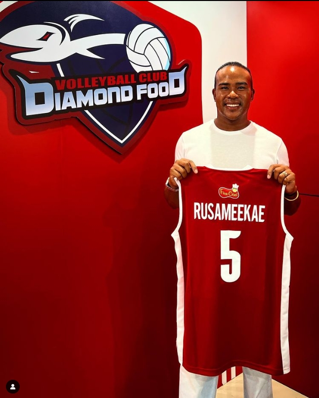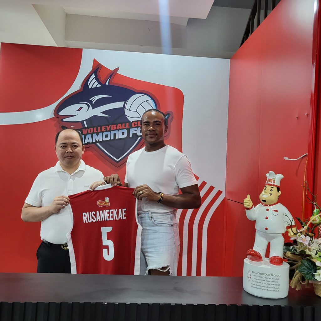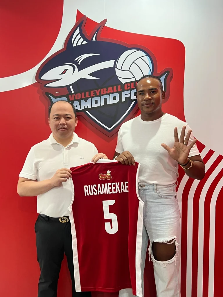 รัศมีแข ฟ้าเกื้อล้น ดารานักแสดงชื่อดัง ชูเสื้อหมายเลข 5 พร้อมเปิดตัวกับ ไดมอนด์ ฟู้ดฯ-ไฟน์เชฟ สปอร์ตคลับสโมสรวอลเลย์บอลในศึกไทยแลนด์ ลีก โดยจะเป็นหนึ่งในขุนพลที่จะสู้ศึกวอลเลย์บอล ชาย ไทยแลนด์ ลีก ฤดูกาล2022/23 ที่จะเริ่มเปิดฉากแข่งขันในช่วงเดือนพฤศจิกายนนี้