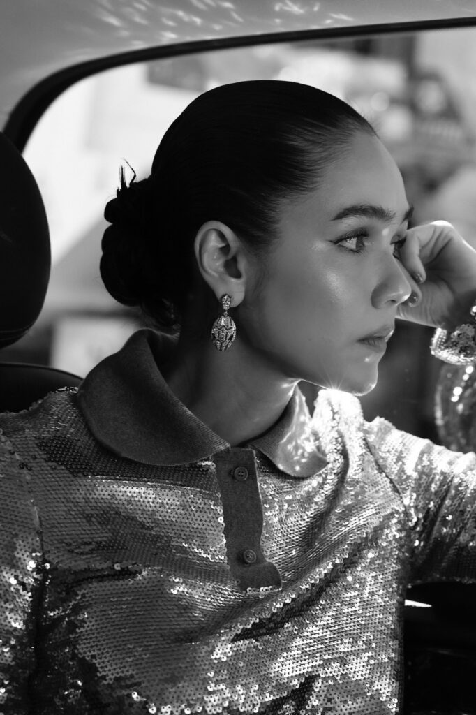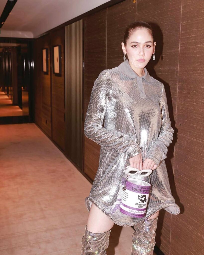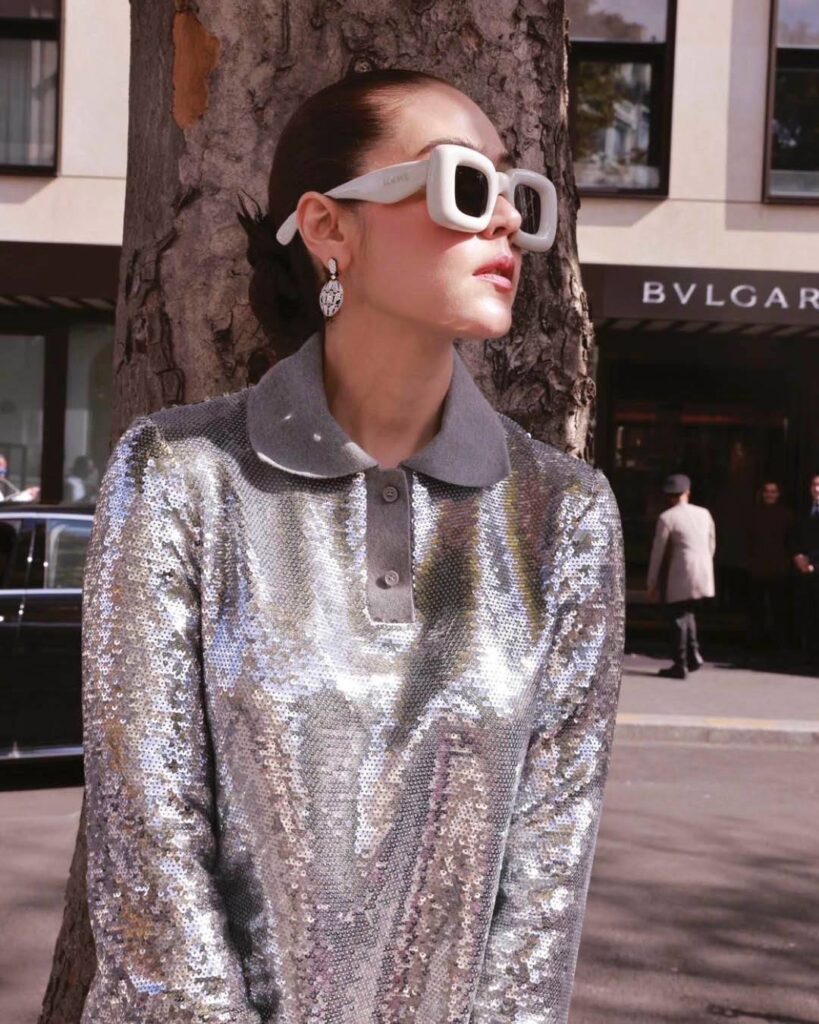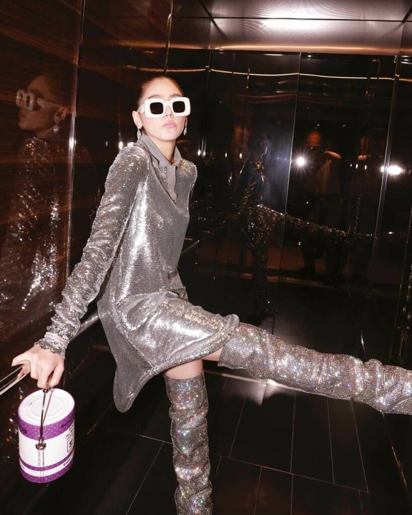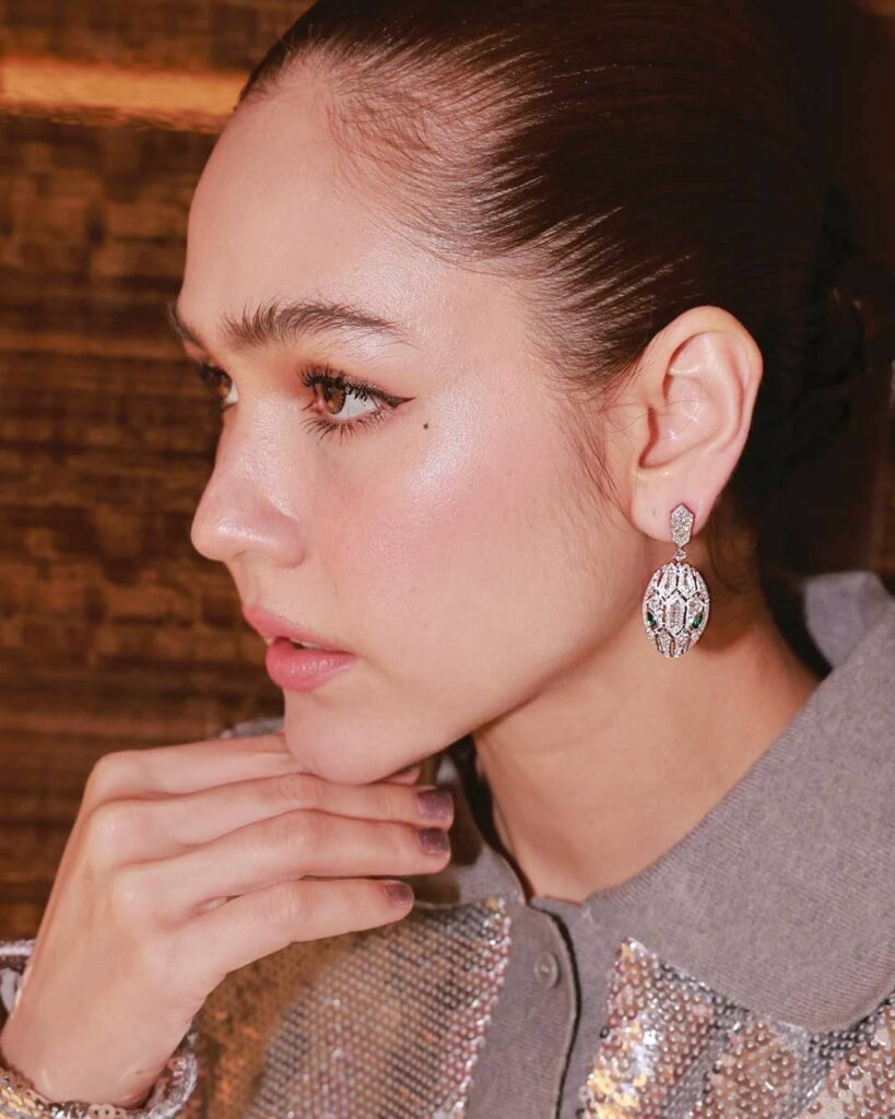 โดยแม่ชมฟาดลุคไฮคลาสด้วยเซ็ตจิวเวลรี่ จาก BVLGARI คอลเลกชั่น High Jewelry Serpenti เครื่องประดับ ตัวแทนความรักลึกลับที่หรูหราที่สุดในโลก ประกอบไปด้วย กำไลข้อมือ ต่างหู Serpenti ตัวเรือนไวท์โกลด์ฝังเพชรประดับมรกต เข้ากับชุดมินิเดรสโปโล ปักเลื่อมทั้งตัวโทนสี Silver จาก JW ANDERSON ของดีไซเนอร์หนุ่มมาแรงชาวไอริชเหนือ โจนาธาน แอนเดอร์สัน (Jonathan Anderson) แมตช์กับบู๊ตยาวปักคริสตัล จาก Saint Laurent กระเป๋าทรงบักเก็ตจาก Louis Vuitton แว่นกันแดดสีขาวจาก Loewe