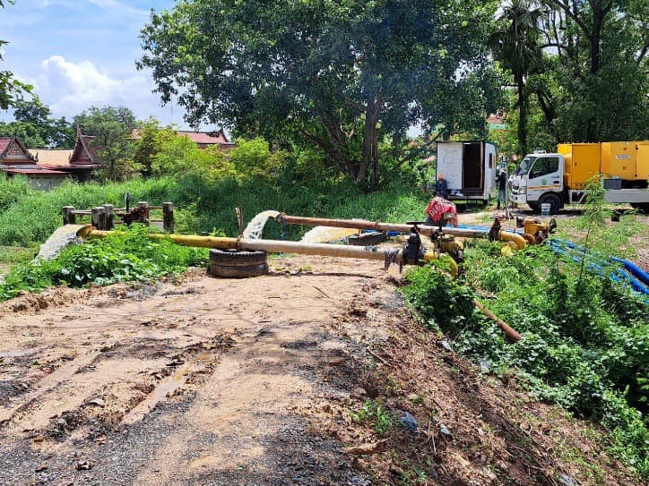 โครงการชลประทานพระนครศรีอยุธยา ติดตั้งเครื่องสูบน้ำเคลื่อนที่ 3 เครื่อง บริเวณศูนย์ศิลปาชีพเกาะเกิด ทรบ.คลองตามา และพระราชวังบางปะอิน