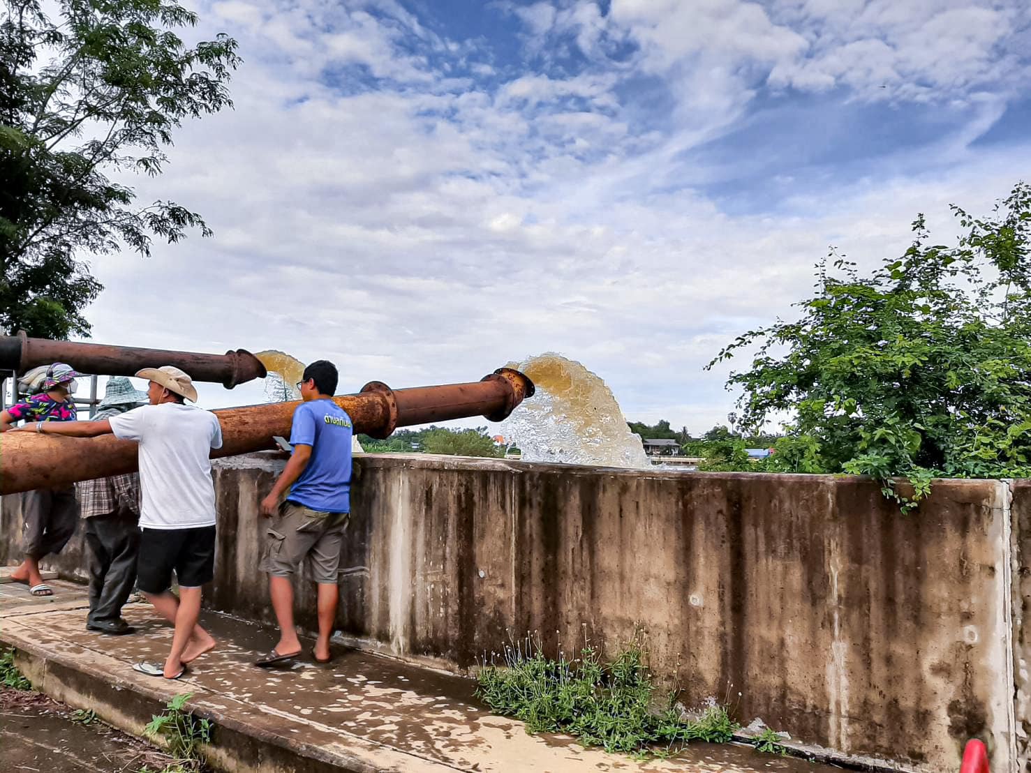 โครงการส่งน้ำและบำรุงรักษาป่าสักใต้ ติดตั้งเครื่องสูบน้ำ 2 เครื่อง เพื่อสูบน้ำออกจากพื้นที่ลงสู่คลองระบายใหญ่ป่าสักใต้