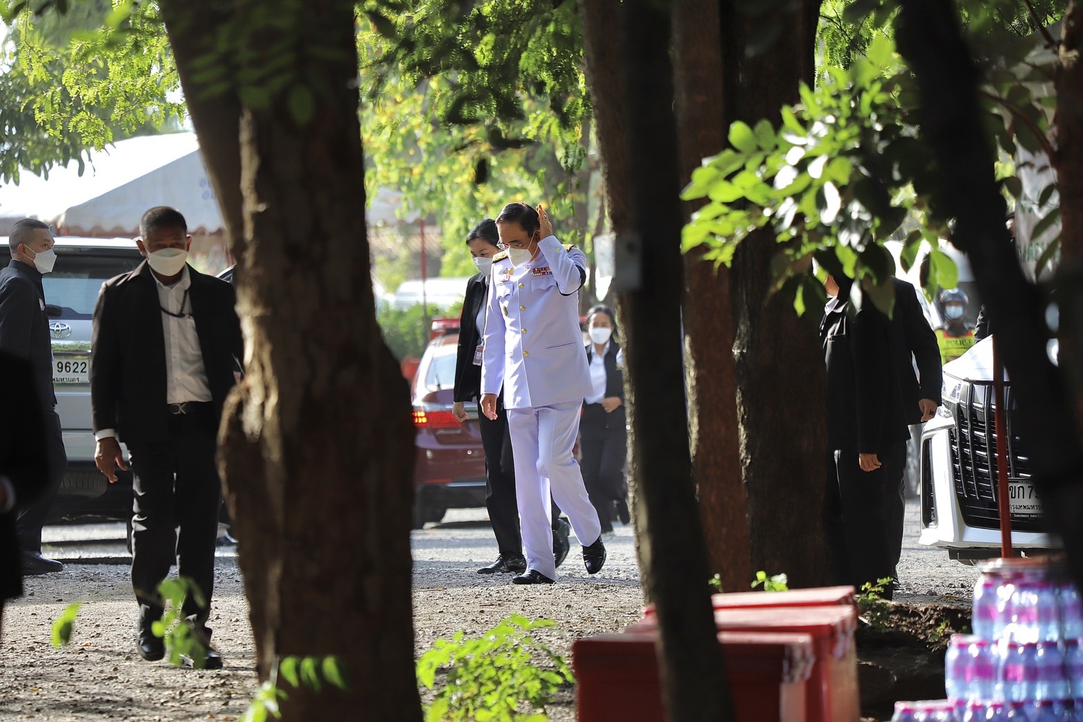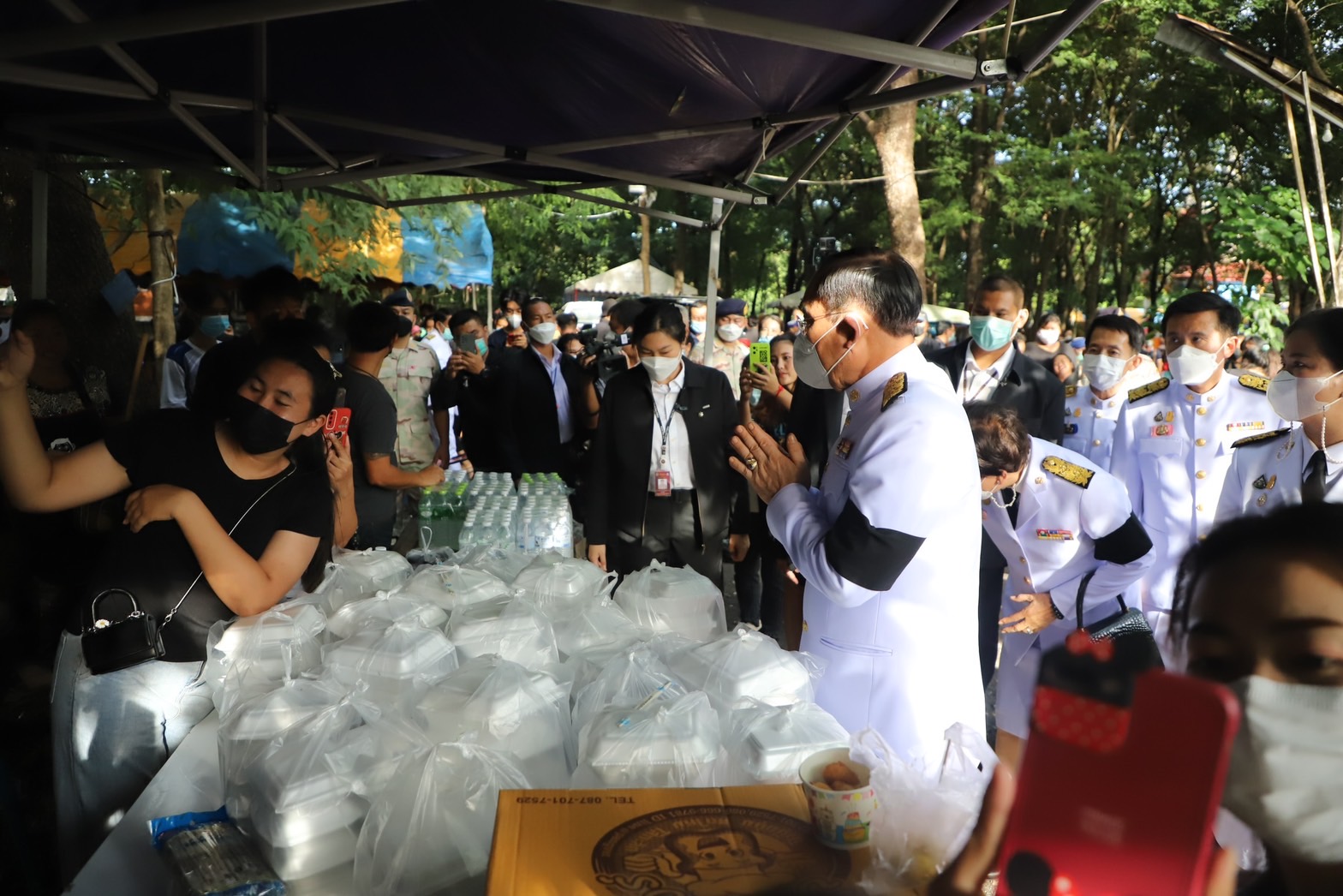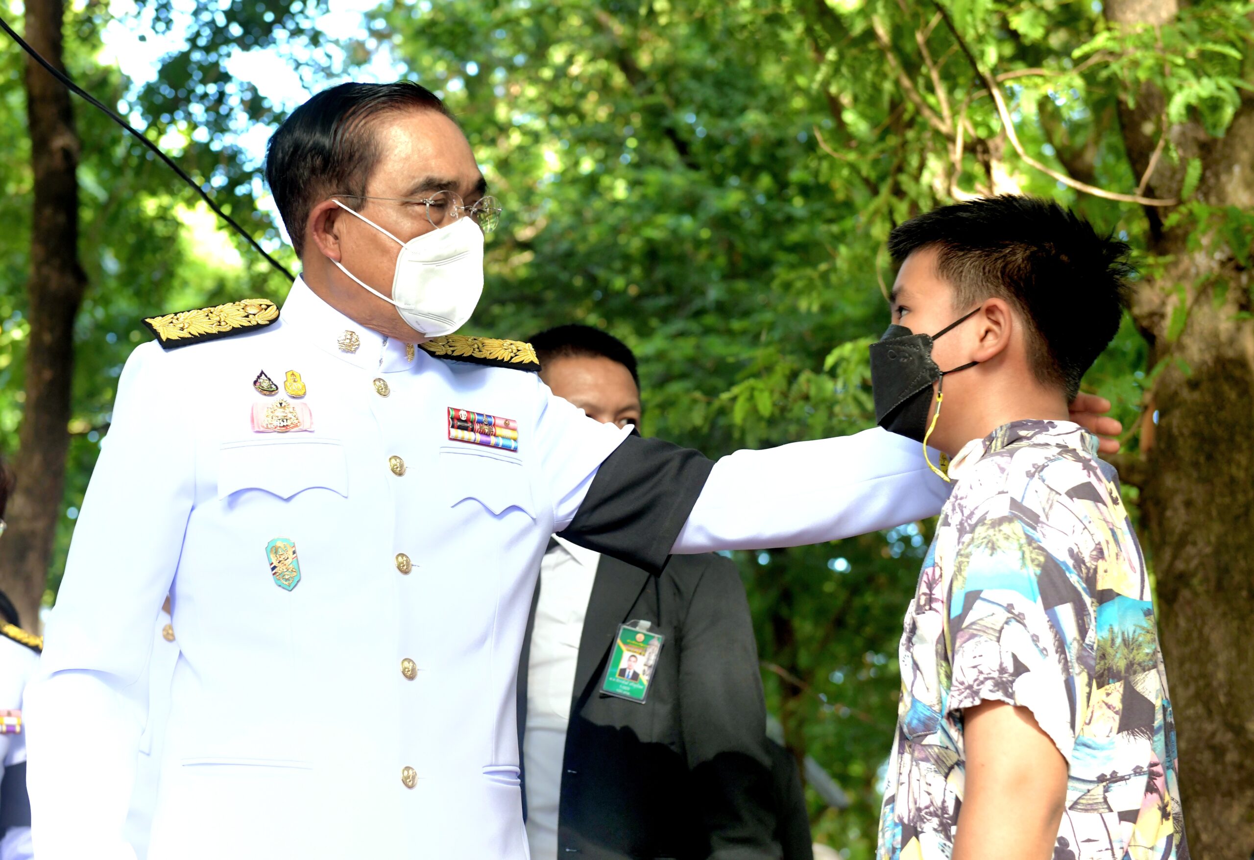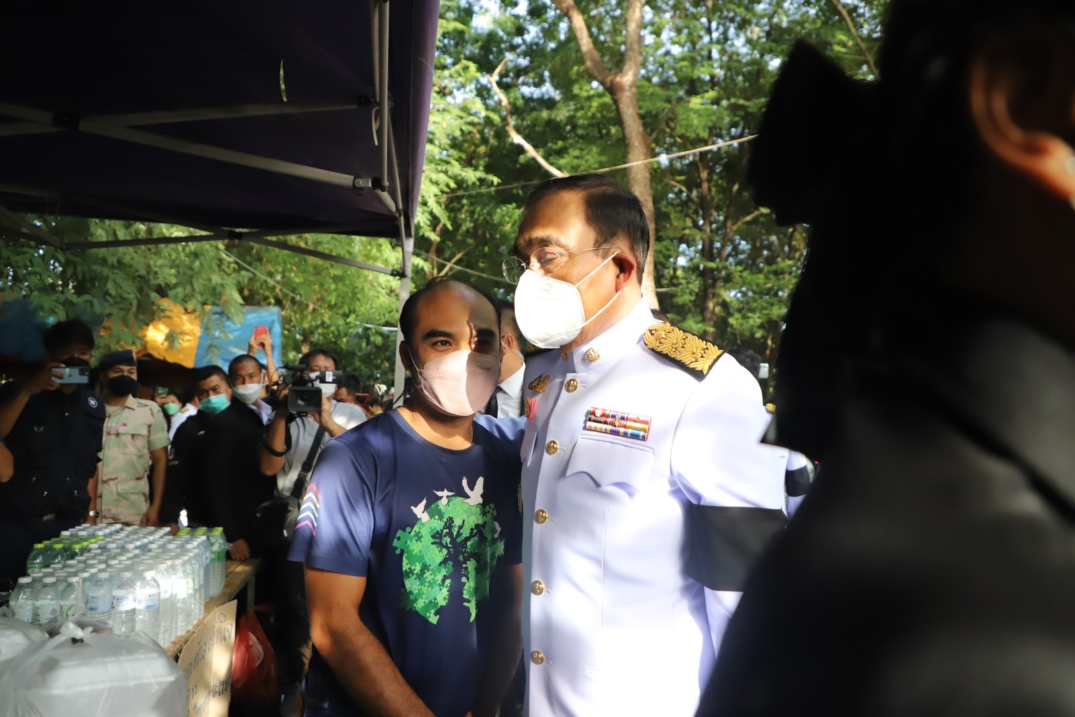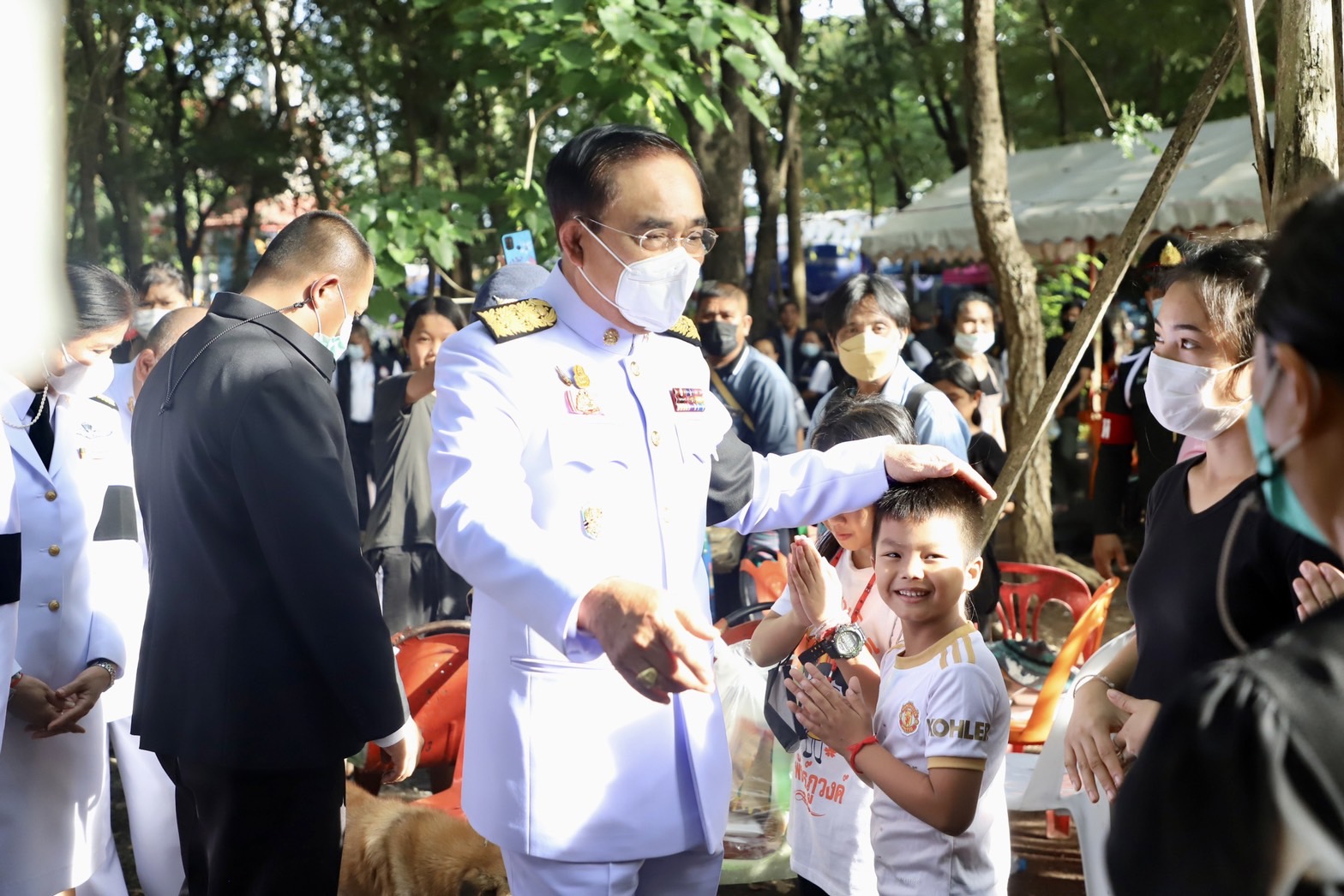 บางช่วงบางตอนนายกรัฐมนตรี ได้กล่าวว่า คนที่อยู่ก็ต้องดูแลกันรัฐบาลเองก็จะช่วยเหลือเยียวยาอย่างเต็มที่ไม่ทิ้งกันแน่นอน และเข้าไปสวมกอดเด็กๆที่อยู่ที่วัดศรีอุทัย โดยใช้เวลาที่วัดแห่งนี้ ประมาณ 20 นาที ก่อนที่จะขึ้นรถเดินทางไปต่อที่วัดราษฎร์สามัคคี