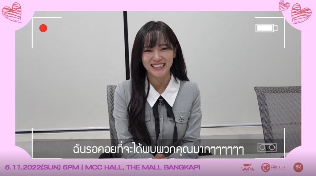 สวัสดีค่ะ ฉัน คิมเซจองค่ะ เซซังชาวไทย^^ 2022 SEJEONG’S SESANG DIARY in BANGKOK ฉันกำลังจะได้พบกับพวกคุณที่นั่นแล้ว วู้วววว เป็นข่าวดีมากๆ เลยค่ะ นานมากแล้วที่ฉันไม่ได้ไปเมืองไทย ฉันรอคอยที่จะได้พบพวกคุณมากๆๆๆๆๆๆ เพื่อที่จะให้แฟนๆ ชาวไทยได้ชมโชว์ที่ยอดเยี่ยม ฉันจะตั้งใจซ้อมให้เต็มที่ และรักษาสุขภาพให้แข็งแรง ทุกคนก็ต้องดูแลสุขภาพด้วยนะ…รอฉันกันด้วยค่ะ ติดตามข้อมูลเพิ่มเติมสำหรับงานนี้ที่ www.kokoconnection.com ตรวจสอบข้อมูลต่างๆ ที่ลิ้งนี้ได้เลยค่ะ ทุกคน…ฉันอยากพบกับพวกคุณเร็วๆ และอยากมีช่วงเวลาดีๆ กับพวกคุณค่ะ รอฉันอีกนิดนะคะ แล้วพบกัน 6 พฤศจิกายน 2565 ที่ MCC HALL เดอะมอลล์ บางกะปิ นะคะ บ๊าย บายยยยย แล้วเจอกันนะ เซซังไทย…ขอบคุณค่ะ”